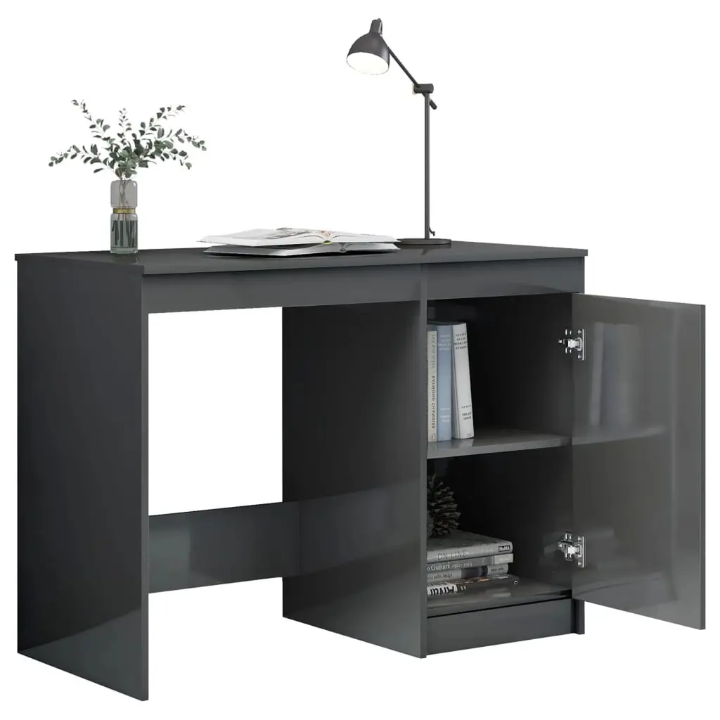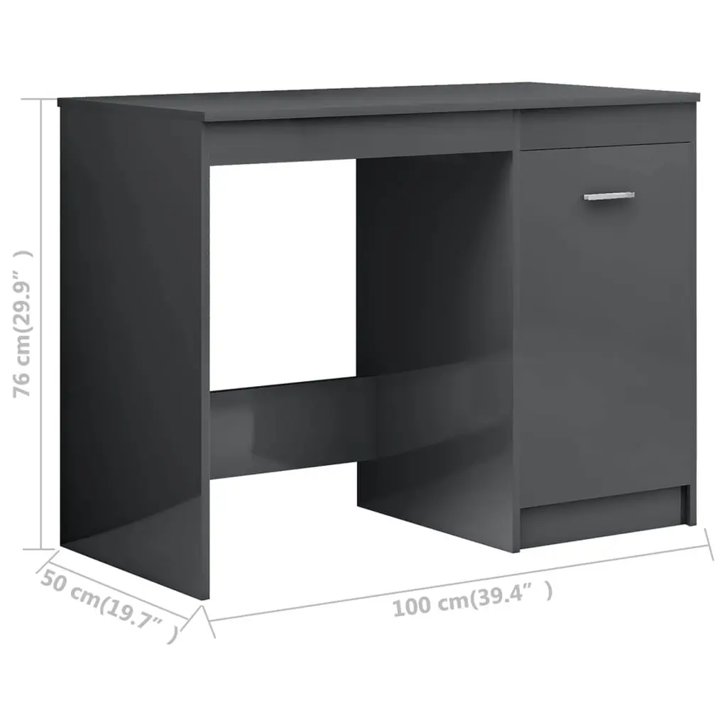 This modern computer desk in high gloss grey is a stylish and functional addition to your office or study. Its sleek lines and contemporary look make it a great workspace for keeping your essentials tidy, so you can focus on what really matters—getting your work done. Ample Storage: The built-in cabinet offers loads of space for your books, files, and supplies, keeping everything neat and handy while hiding away the clutter.Contemporary Design: This desk has a modern vibe, thanks to its shiny finish, making it a standout piece in any workspace.Compact Dimensions: At 39.4 in long, 19.7 in wide, and 29.9 in high, this desk fits perfectly in tight spaces.Durable Construction: Crafted from engineered wood, this desk combines good looks with durability, built to withstand daily use while remaining a stylish addition to your home.Easy Maintenance: Just wipe down the glossy surface with a damp cloth to keep it looking fresh and new without much hassle.