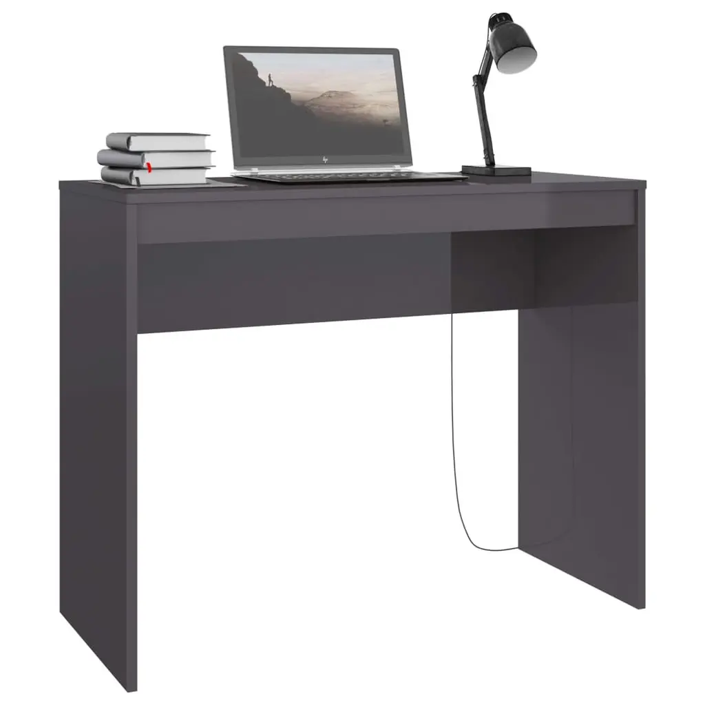 Vidaxl Desk High Gloss Grey Engineered Wood Compact Sleek Desk