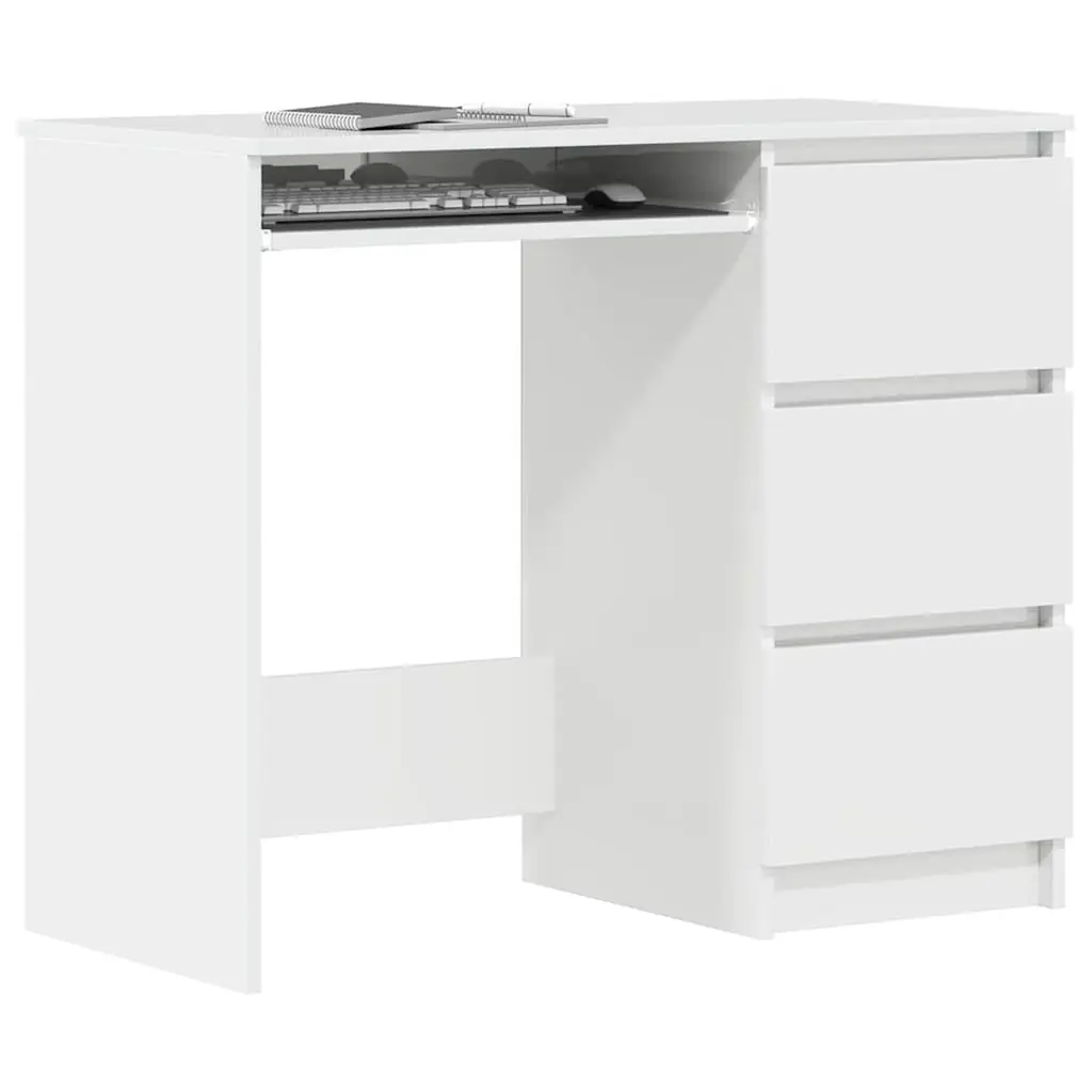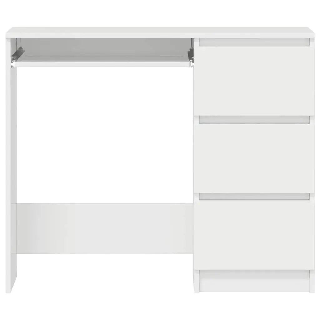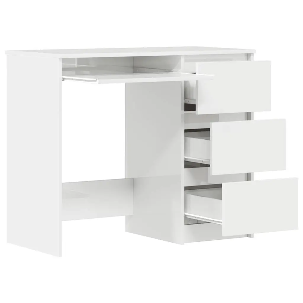 Vidaxl Desk High Gloss White Engineered Wood 35.4 In Long Desk Drawers