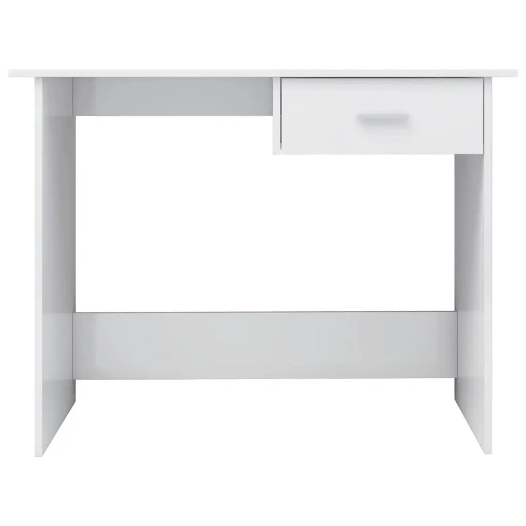 This Modern High Gloss White Writing Desk is a slick and stylish solution for all your working and studying needs, merging function with modern design. Great for both work and play, this desk lights up any space with its shiny finish and neat look, making it a top pick for your home office or study space where you can get down to business or enjoy creative tasks. Eye-Catching Glossy Surface: The high gloss look gives this desk a flashy finish, making it a standout piece that will brighten up your decor while also providing a neat area for writing or using a laptop.Compact Design: at 39.4 in long and 19.7 in wide, this desk is just right for snug spaces, providing ample work area without hogging too much floor space, making it ideal for apartments or shared rooms.Handy Storage Drawer: With one standard drawer, this desk lets you keep your essentials like pens and notepads stashed, helping you stay organized.Sturdy and Reliable: Built from durable engineered wood, this desk is designed to last, giving you a strong place to work while looking good doing it.Gender-Neutral Design: With a clean modern vibe, it fits any style and works for anyone, making it the perfect workspace for students or professionals alike.
