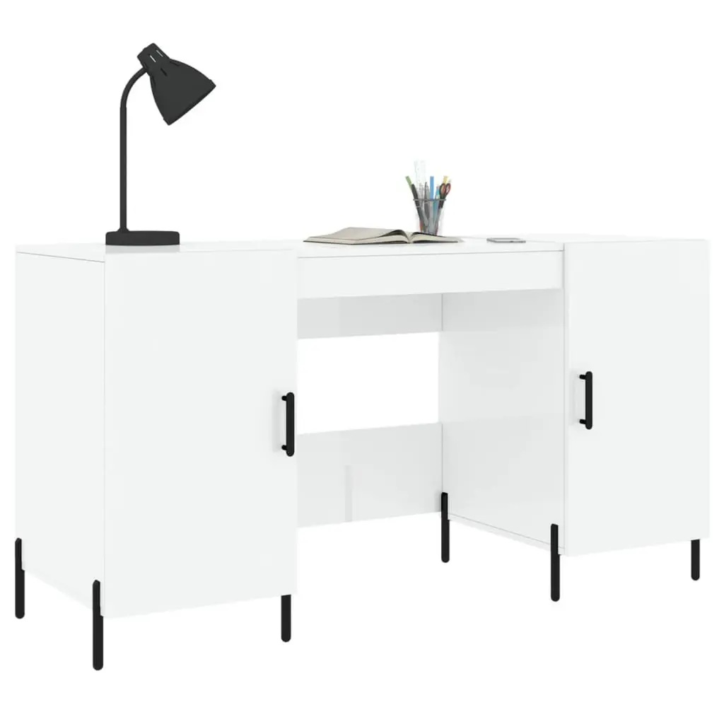 Vidaxl Desk High Gloss White Engineered Wood, Iron, Zinc Alloy
