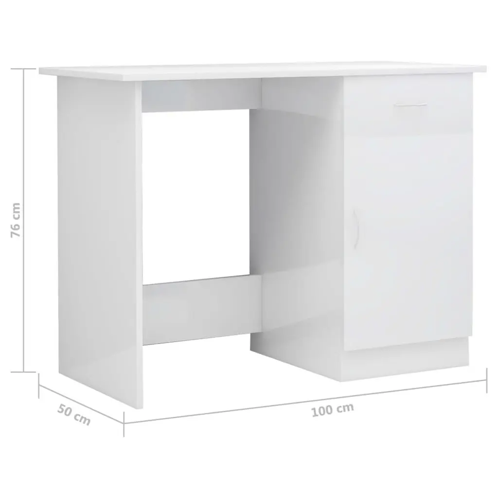Vidaxl Desk High Gloss White Engineered Wood Standard Desk Rectangular