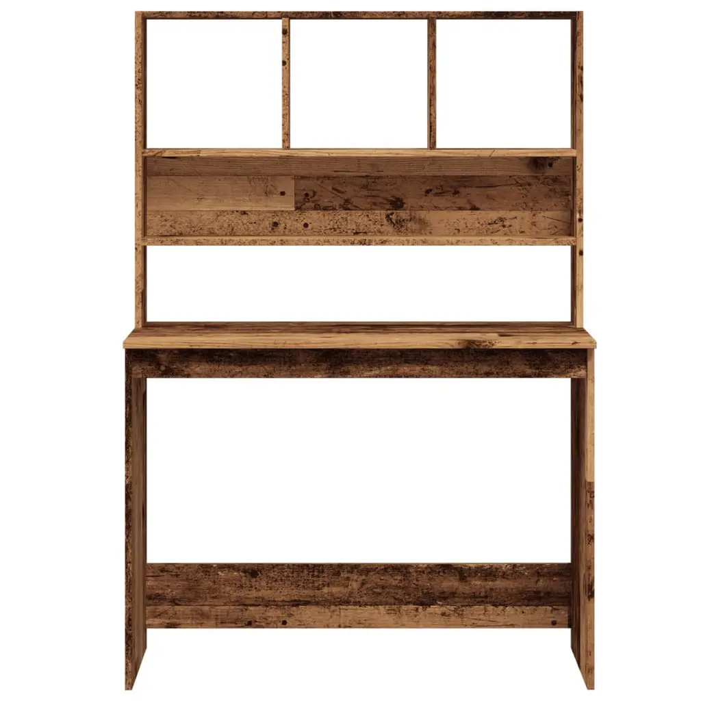 This compact computer desk is all about boosting your workspace while keeping it practical. With its modern design and sturdy engineered wood build, it’s a stylish yet effective choice for your home office, study, or living room. The rich old wood color adds warmth, making it more than just another piece of furniture—it’s a real eye-catcher. The built-in shelves help keep your office supplies or books organized and easy to grab, so you can always enjoy a clean and productive spot to work. Ample Storage: This desk comes with three shelves that give you plenty of storage for all your office bits, books, and decorative items. It’s key for keeping your space neat and tidy, so you can nail your tasks without the mess.Modern Design: With its clean lines and simplistic look, this desk not only does its job but also makes your space look better. Its old wood finish creates a warm vibe, making it a welcoming addition to any home office or study.Sturdy Construction: Made from engineered wood, this desk is built for daily use. Its smooth surface and solid design make sure it’ll be a reliable spot for years, ideal for focused computer work or writing.Wall-Mounted Option: You can mount this desk on the wall, saving floor space and giving a sleek, modern look. This is perfect for smaller rooms where every bit of space counts, letting you get creative with your living area.Recommended Uses: This desk is great for all sorts of activities—writing, studying, or using your computer. Its versatile design and generous surface area mean it can fit your need, whether for work, school, or personal projects.