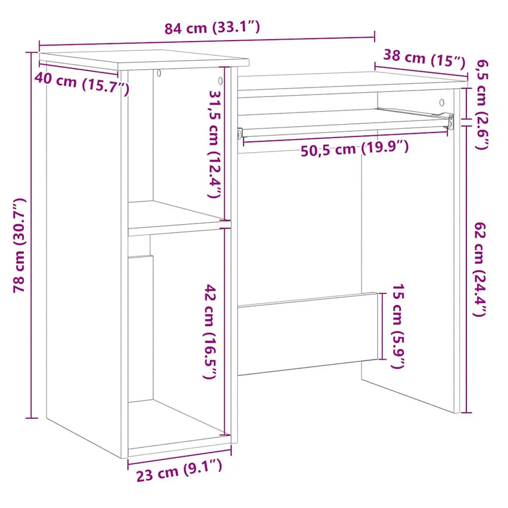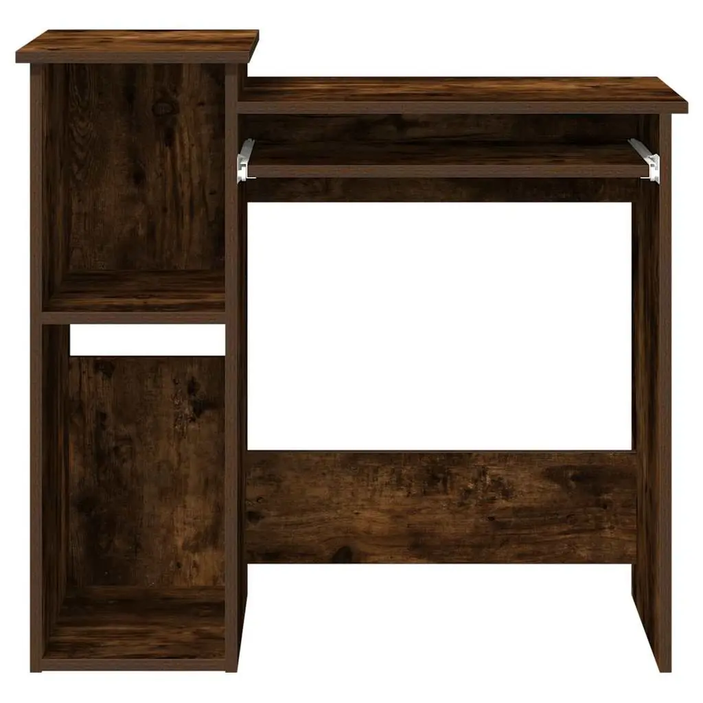This desk is all about functionality and style, making it a top choice for any study or office. Made from quality engineered wood with a lovely smoked oak finish, it offers a sleek surface perfect for studying, writing, or using a computer, creating a productive atmosphere. Ample Storage: The desk has two sturdy shelves, offering plenty of space for your books, supplies, and knick-knacks, so you can keep your area neat and organized.Timeless Design: With its modern vibe, this desk blends smoothly with all sorts of decor styles, adding both elegance and practicality to your room.Durable Construction: Made of strong engineered wood, this desk is built to handle everyday use, staying reliable in busy homes or offices.Easy Maintenance: The smooth desk surface makes cleaning a breeze, allowing you to keep it tidy without needing any harsh cleaning products.Compact Size: At 33.1 in wide, 15.7 in deep, and 30.7 in high, this desk fits perfectly in smaller spaces while giving you enough workspace to knock out your tasks.