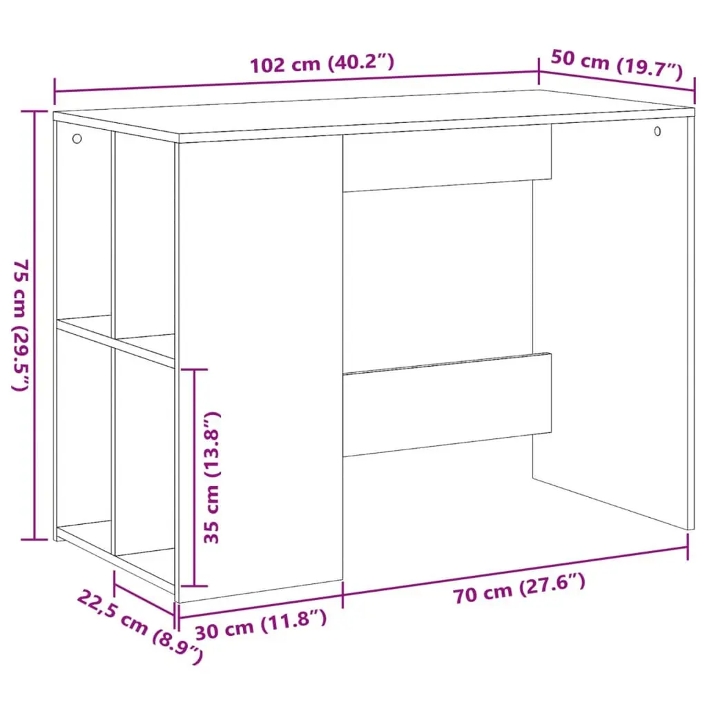 This Modern Smoked Oak Writing Desk is the perfect mix of style and function. At 40.2 in long and 19.7 in wide, it fits right into any modern living or work area, looking sleek while giving you enough space for all your writing and computing needs. Spacious Design: The desk has a generous surface area of 40.2 in by 19.7 in, perfect for laptops and books. Quality Material: Crafted from engineered wood for durability and longevity. Modern Aesthetic: Its smoked oak finish adds a stylish touch to any room. Convenient Dimensions: With a height of 29.5 in, it allows you to sit comfortably for long periods. Easy Maintenance: Just wipe it down with a damp cloth to keep it looking fresh.