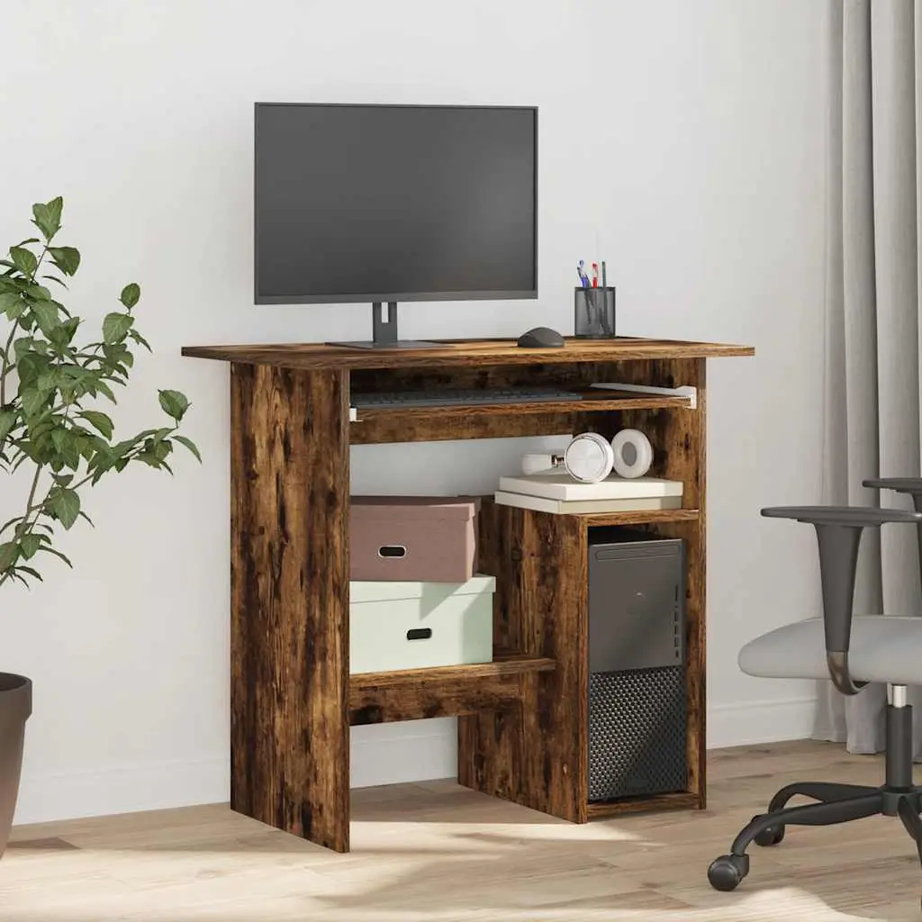 Vidaxl Desk Smoked Oak Engineered Wood Storage Desk Rectangular