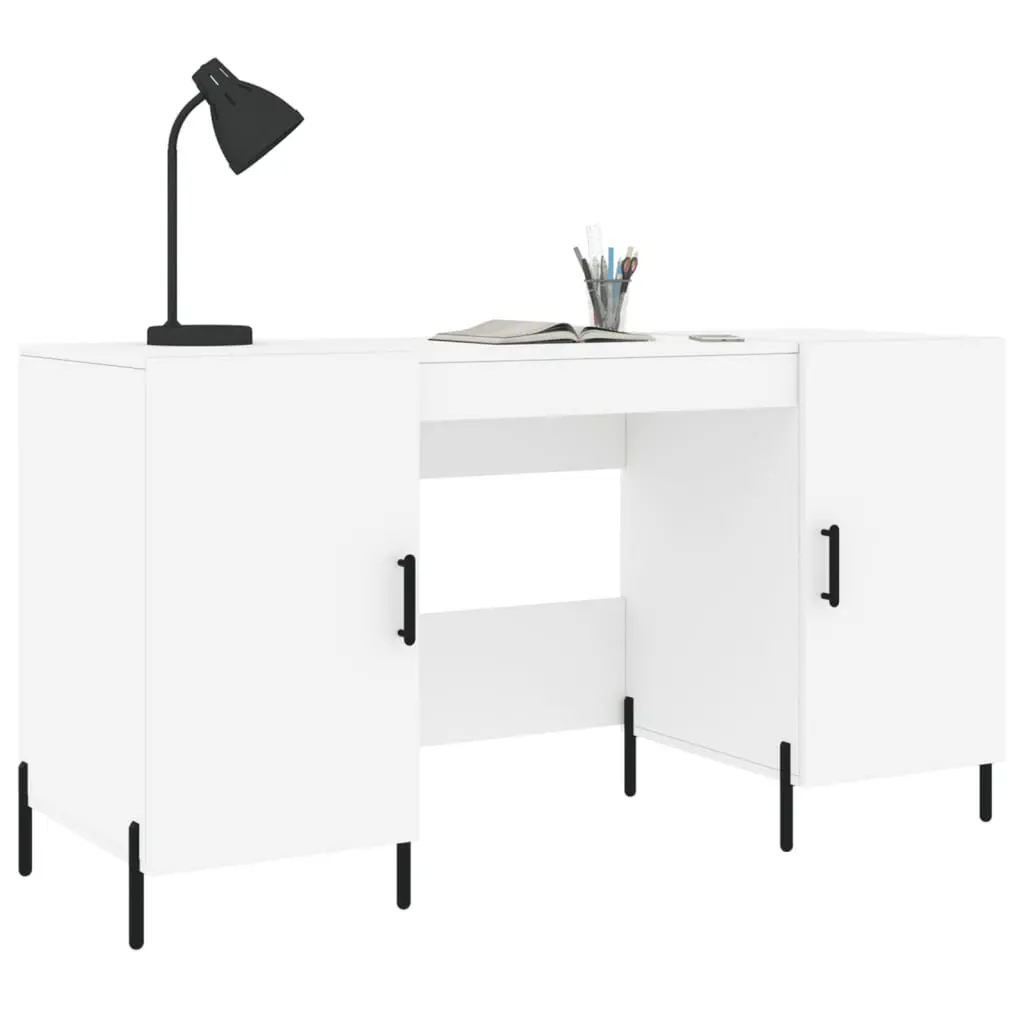 This desk mixes function with a stylish industrial vibe, making it just right for work or study. Built from sturdy engineered wood with a sleek white finish, it acts as a trendy focal point in any room, easily fitting in with modern or simple decor. The clean lines and smooth top create a friendly space for getting things done, whether you're studying, working from home, or diving into a creative project. Thanks to its smart design, this desk can slot right into your bedroom, office, or living room. Lots of Storage: This desk has four shelves, giving you loads of room for your books, papers, or decorative bits. It's designed to keep your workspace neat and tidy, letting you focus on your tasks.Chic Zinc Alloy Handles: Each door has lovely polished zinc alloy knobs, adding a nice touch to the overall look. They're not just stylish but also make it easy to get to your things, blending function with style.Sturdy Frame: Built with iron legs, this desk offers top-notch stability and strength, able to hold a fair bit of weight without wobbling. The square leg design boosts durability, making this desk a smart long-term choice.Great for Any Setting: Whether in a snug home office or a spacious living room, this desk fits various needs—from studying to leisure. It's flexible enough for everyone, providing a stylish spot for all your work.Compact Size: Measuring 55.1 in long, 19.7 in wide, and 29.5 in high, it’s perfect for tight spaces while offering plenty of area for writing or computer tasks. Its smart dimensions mean it slots into any layout, catering to different setups.