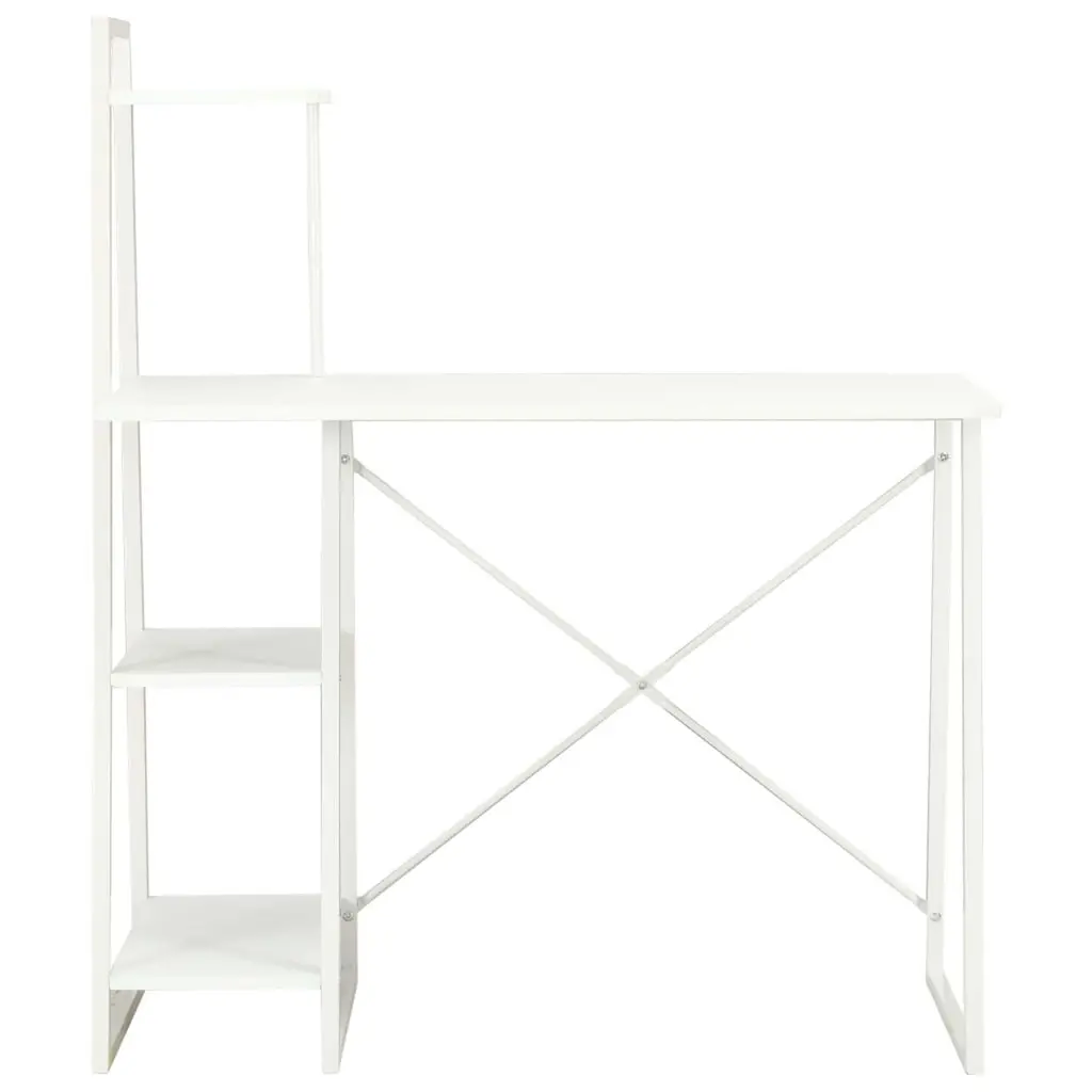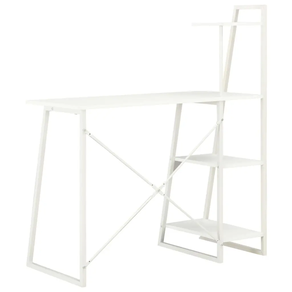 This modern white computer desk merges functionality with sleek style, making it a great choice for different workspaces. Its clean lines and smooth finish improve home offices and study areas, creating a welcoming place for productivity and creativity, whether you’re a student, pro, or casual user. Ample Storage: This desk has built-in shelves for easy organization of books, documents, or decor items. It keeps your workspace clean and encourages efficient work.Stylish Design: With its sleek white finish, it fits with any room's decor while adding a modern touch – perfect for minimalist to maximum styles.Durable Construction: Made with a robust powder-coated steel frame and engineered wood surfaces, it offers stability and can take daily use without losing its charm.Versatile Use: This desk is great for various things, including computer work, studying, and writing, suiting home offices, study rooms, or even shared areas.Space-Saving Design: Perfect dimensions mean it suits smaller spaces well, giving you enough work area without taking up too much room.