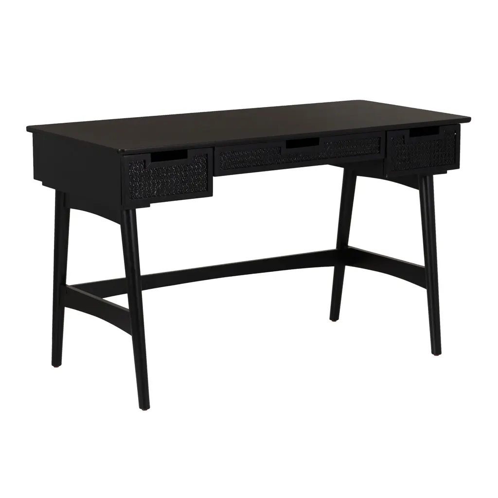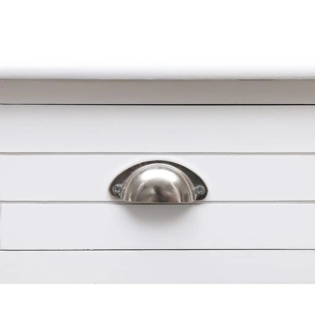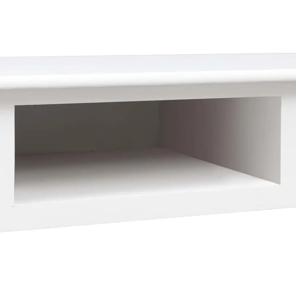 This writing desk is all about elegance and practicality, making it a fab addition to any home office or study. With its smooth white top and minimalist vibe, it goes well with various decor styles and offers plenty of space to work, study, or jot down ideas. Ample Storage: This desk makes staying organized a breeze with two roomy drawers and one open slot. Each drawer is perfect for keeping writing stuff, notebooks, and office supplies, so you can keep your workspace neat. The open space is great for showing off decor or quick access to your go-tos.Quality Materials: Built from solid Paulownia wood, this writing desk is tough. The solid frame and strong surface can handle daily wear without losing its style or function. Its painted finish boosts its good looks and protects the wood for the long haul.Smooth Surface: The desk boasts a roomy writing area of 43.3 in by 17.7 in, great for laptops, books, and pens. The smooth surface makes writing easy and comfy, whether you're grinding away on assignments or just jotting down quick notes.Stylish Handles: The trendy cup pulls in polished silver add a stylish touch to the whole look. They’re easy to grip, making drawer access a breeze, and their finish looks fab with the white wood.Versatile Use: Whether for writing, studying, or as a computer workstation, this desk caters to lots of needs. Its timeless style and useful features make it perfect for anyone, boosting both productivity and comfort in your daily routine.