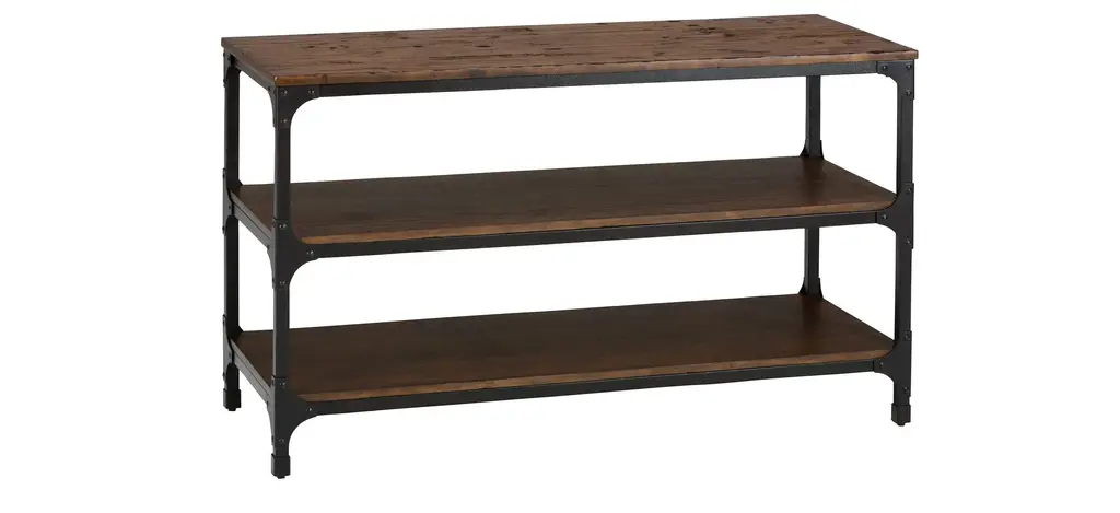 Vintage industrial look with modern design; Made of solid wood and metal; 2-tone finish: rustic poplar finish and rustic black metal finish; 4 open shelves