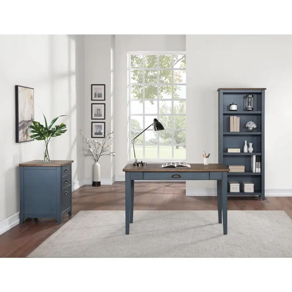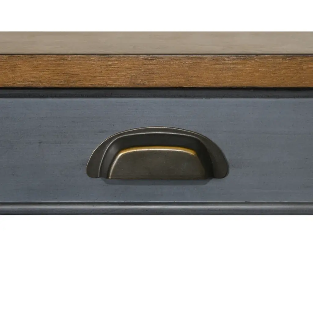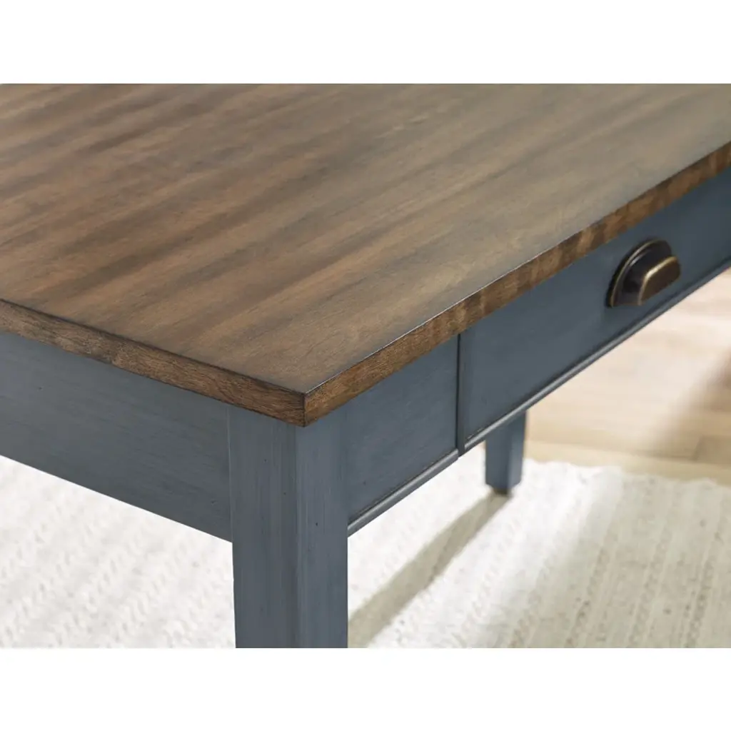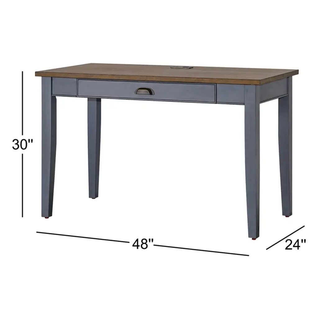 Elevate your home office with this sleek writing desk that combines form and function. Featuring a solid and engineered wood construction, this desk showcases a rectangular design with a single drawer to store your essentials. The built-in electrical outlet and integrated cable management keep your workspace clutter-free, while the natural wood grain color variation adds a touch of warmth. Please note, the desk's back is unfinished, so it's best placed against a wall. Create a cozy workspace where you can focus on your next big project or pen your next novel.