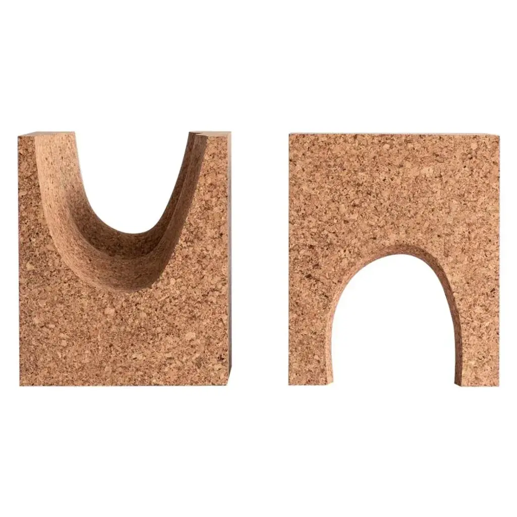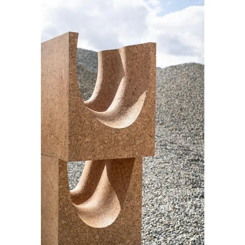 Set of 2 void 03 by dmnts design dimensions: 42 x 39 x 50 cm (each piece) materials: quercus suber cork one of a kind void 03 is a multipurpose object based on the analysis of the void space of the “domus de janas” genna salixi, an underground structure from 3rd century bc, located in sardinia.the design process becomes the means to investigate, reinterpret, and connect these eternal forms in a functional sustainable object. New relationships between traditional craftsmanship and advance manufacturing, determines two complementary geometry that change according to their position layouts: a_stand up desk, b_coffee table, c-stool + pet - nest. The material chosen is quercus suber cork, collected in sardinia to develop a complete sustainable approach towards materiality and the process. Lorenzo demontis is an architect and designer based in sardinia, italy. Since graduating from sapienza university in rome, he has been working as freelance designer for various design and architecture studios in italy and in the netherlands, as well as carrying on with his own projects with dmnts. Lorenzo’s aim is to research and develop a design approach where archetype forms are combined with pure functionality and contemporary issues. Establishing new relations between advanced manufacturing and craftsmanship. Focused on a complete sustainability, where manufacturing scraps from wood, marble and plastic industries, regain a purpose through specific design investigations.