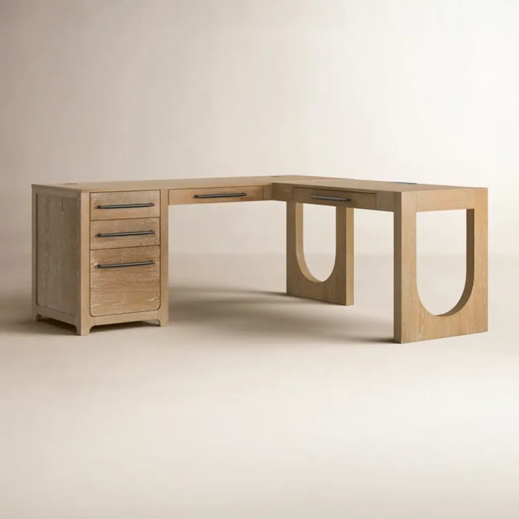 Nate + Jeremiah’s Voyage L-desk is an homage to coastal living at its most simple and universal. Brushed light oak and minimal, clean lines create a look designed to mix across many styles. Sometimes it’s the simplest of designs that make the biggest impact, adding to the home not with more, but by being intentional.