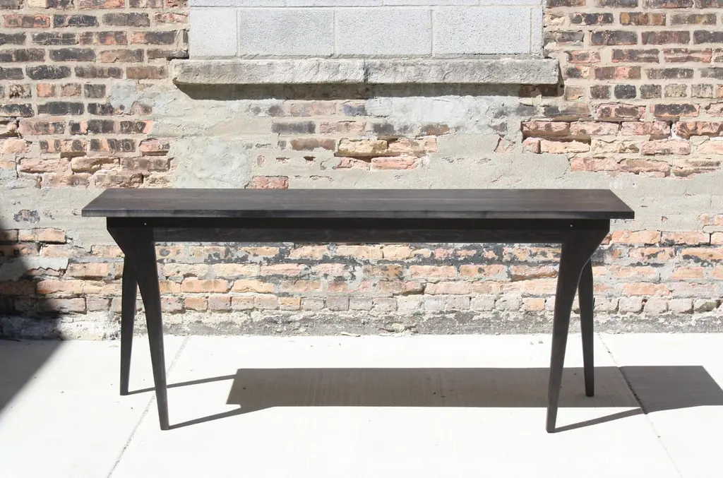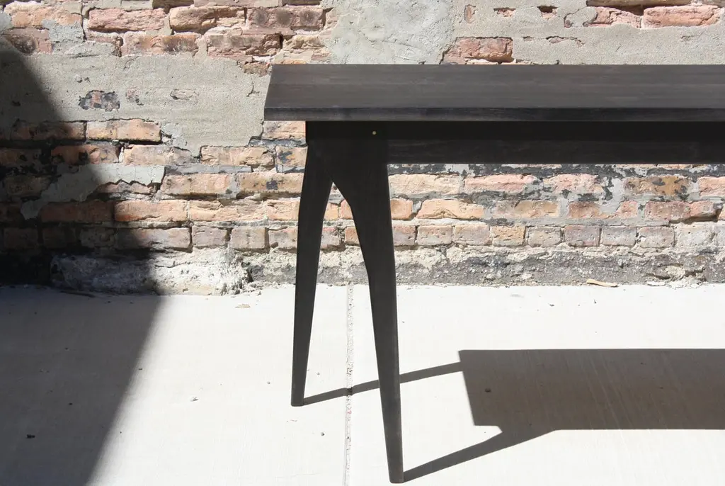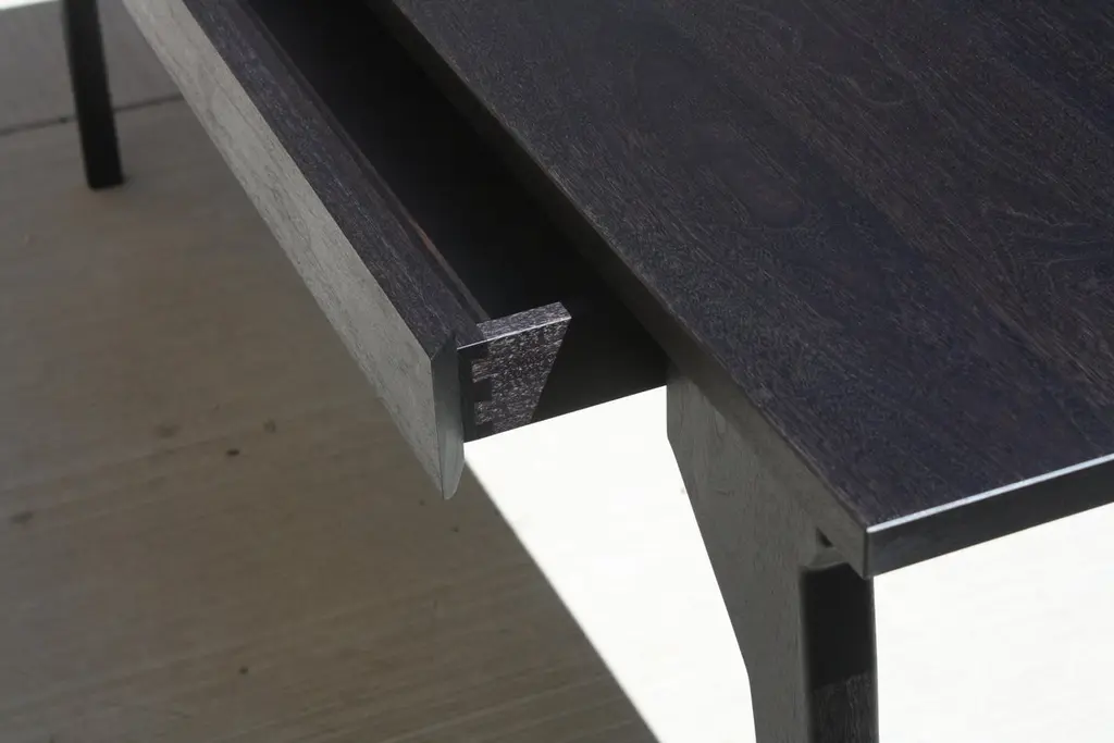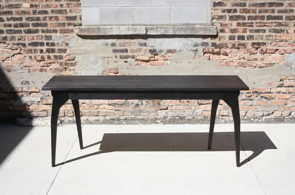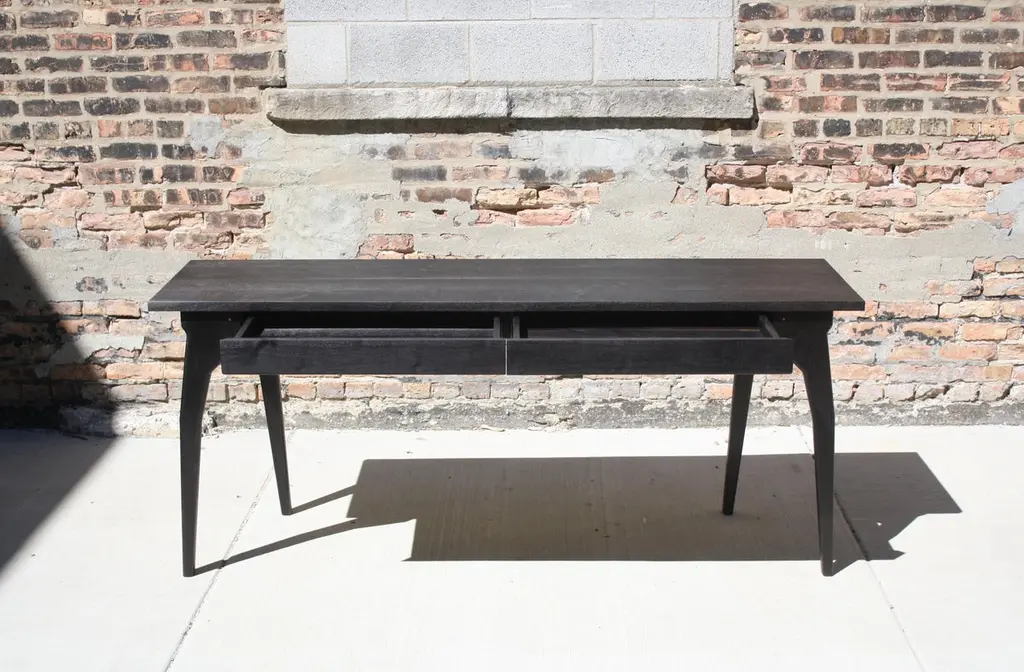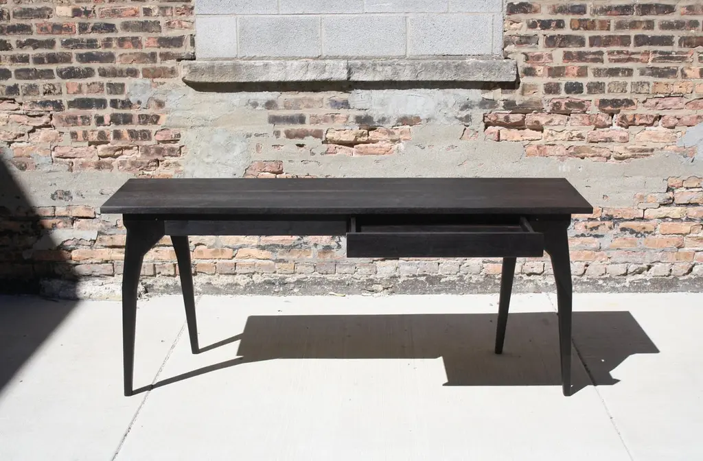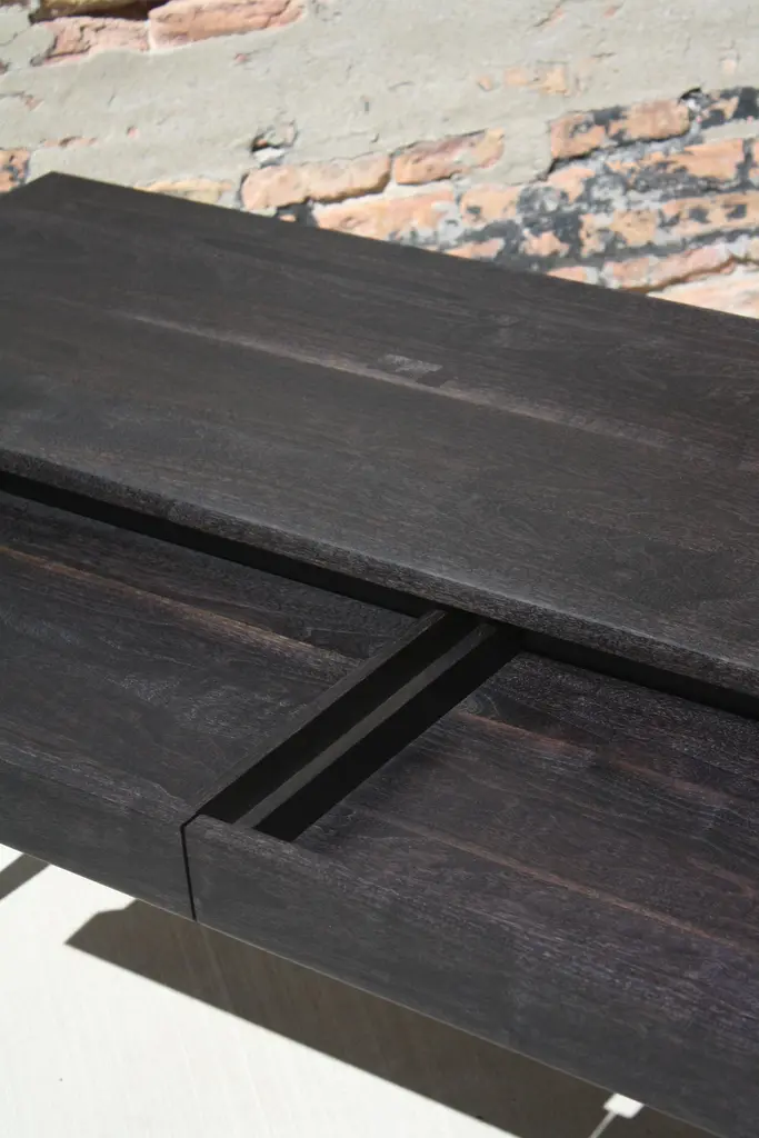 Shown in oxidized walnut with two drawersMeasures: 72" wide x 30" tall x 21" deepThis desk or console table showcases proportion modeled after anatomy. Constructed from solid wood and hand-finished with two integrated dovetailed drawers for storage.Available in custom finishes and dimensions.
