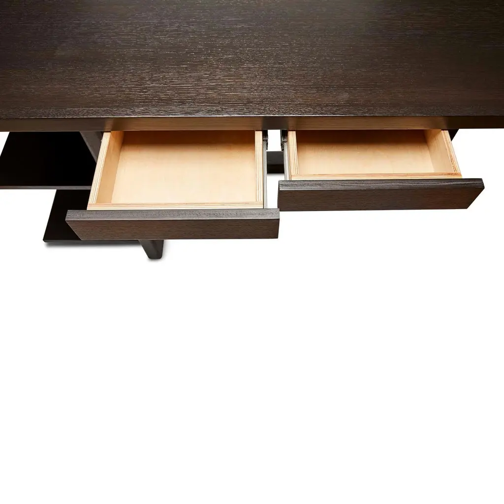 The Ivanhoe desk features a cantilevered base with open display shelves. Available in American walnut or white oak and drawers are available upon request. The Lawson-Fenning Ccollection is designed and handmade in Los Angeles, California. Reach out to discover what options are currently in stock.