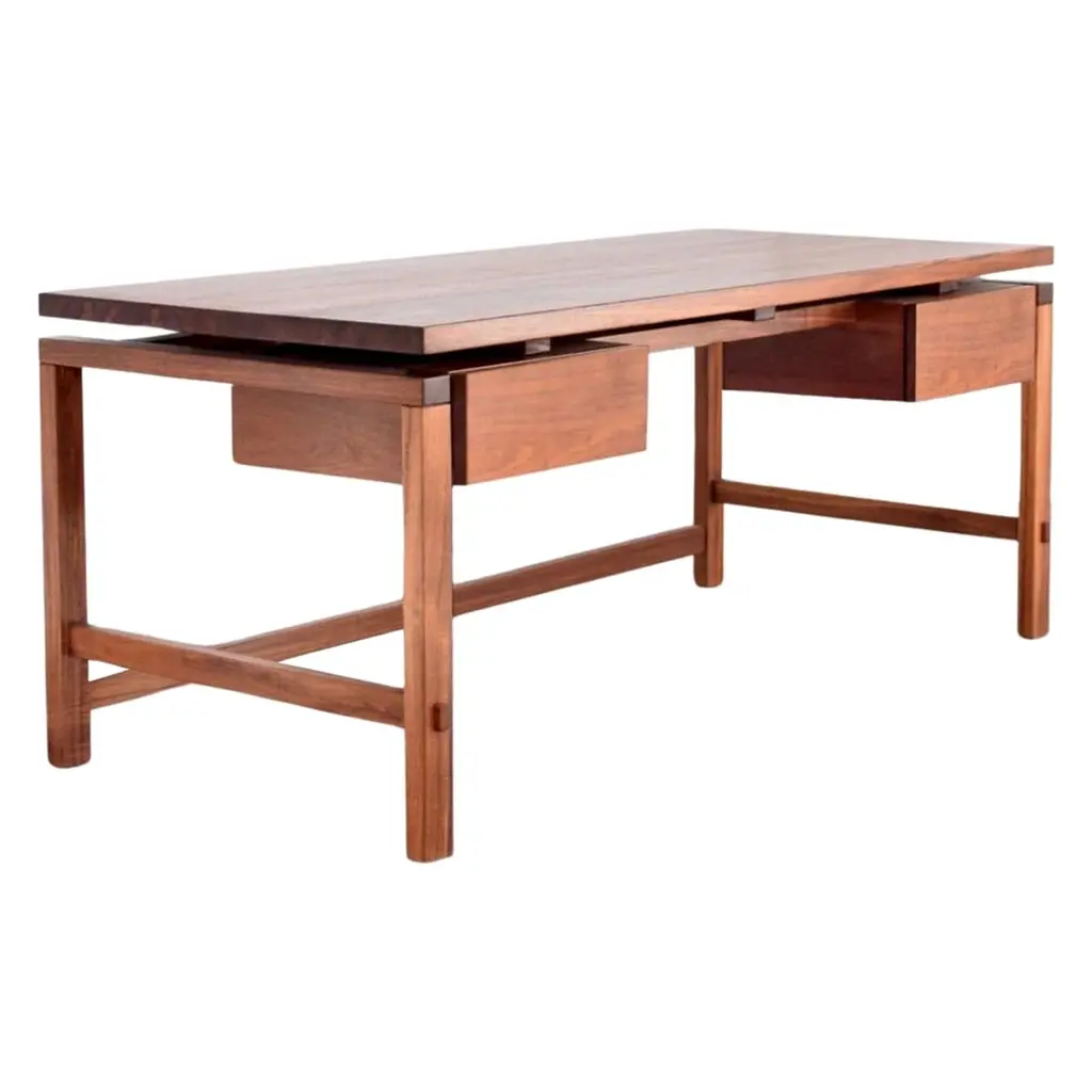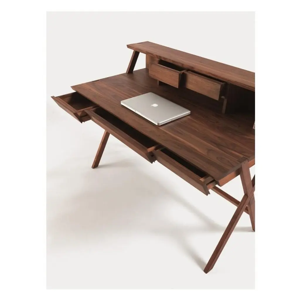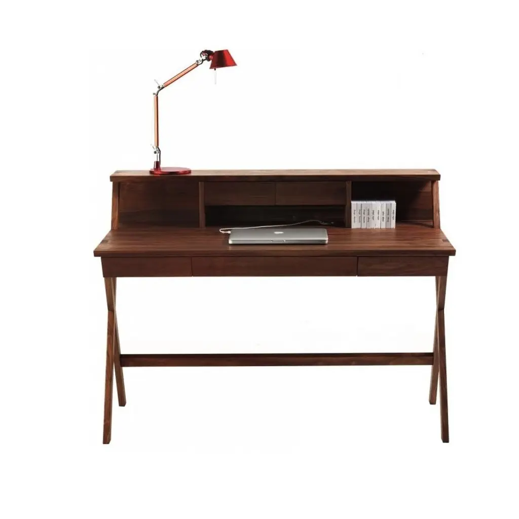 Writing desk made completely of solid walnut. The drawers are assembled with dovetail joints (includes 2 top drawers and 3 drawers under the desk). This writing desk is characterized by an “X” joint between the legs.Made in Italy:Made in Italy furniture means design, quality, style and sophistication.The typical elegance of Italian design can be found in this piece. No wonder that the world famous designers like Philippe Starck, Karim Rashid, Piero Lissoni, Rodolfo Dordoni and many others put their signature next to made in Italy.