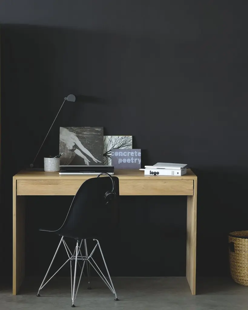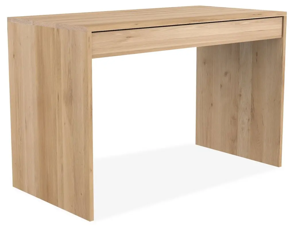 Crafted of oak, a hardwood known for its prominent grain and resistance to scratching and dust, this clean-lined desk is equipped with one soft-closing drawer that's perfect for storing everything from stationery to desk accessories.