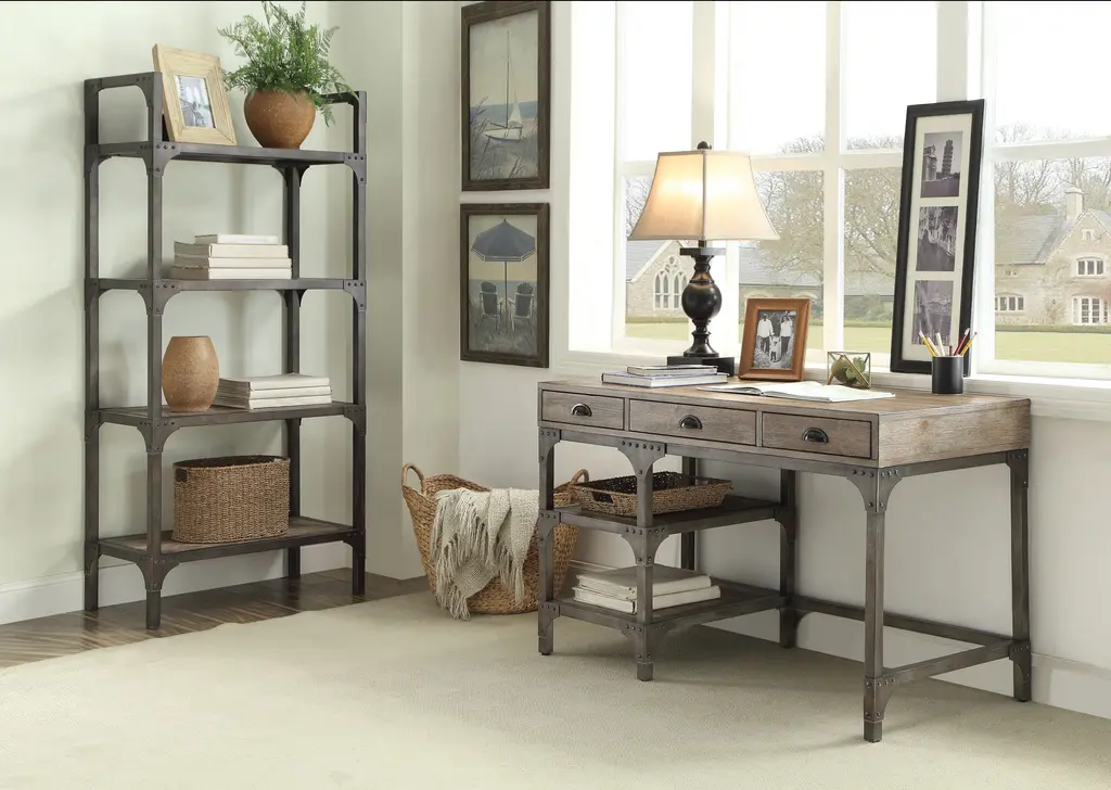 Weathered Oak And Antique Silver 3-Drawer Writing Desk