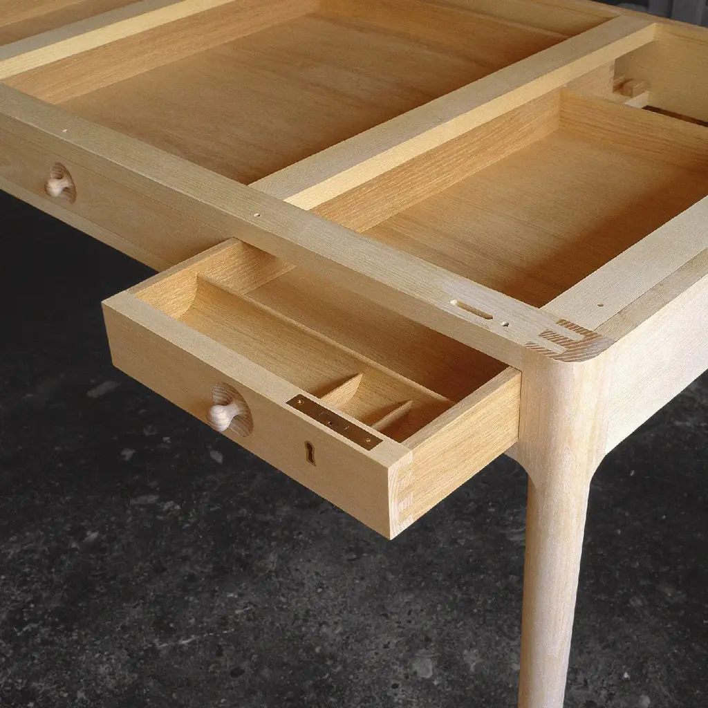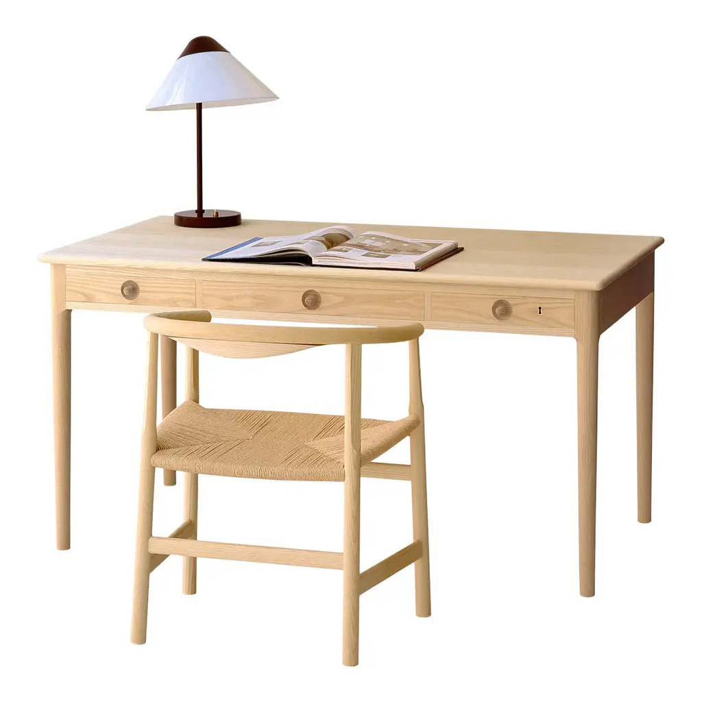 This is classic Danish craftsmanship offering simple and modest functionality in solid wood. As a counter experiment, this desk pays homage to pure, traditional and exquisite woodwork. Although the thorough and dedicated attention of a skilled cabinetmaker is required in executing the work on this desk, the job can be done with quite simple and trivial tools. This is not a search for something new or extraordinary. This is a result of the simple and strong will to create something genuine and honest. Desk comes with a lock in the right drawer. NOTE: This item is made to order by some of the world's best furniture craftsmen using materials that are required to meet PP Mobler's exacting specifications. As such, lead times can vary and are subject to change.
