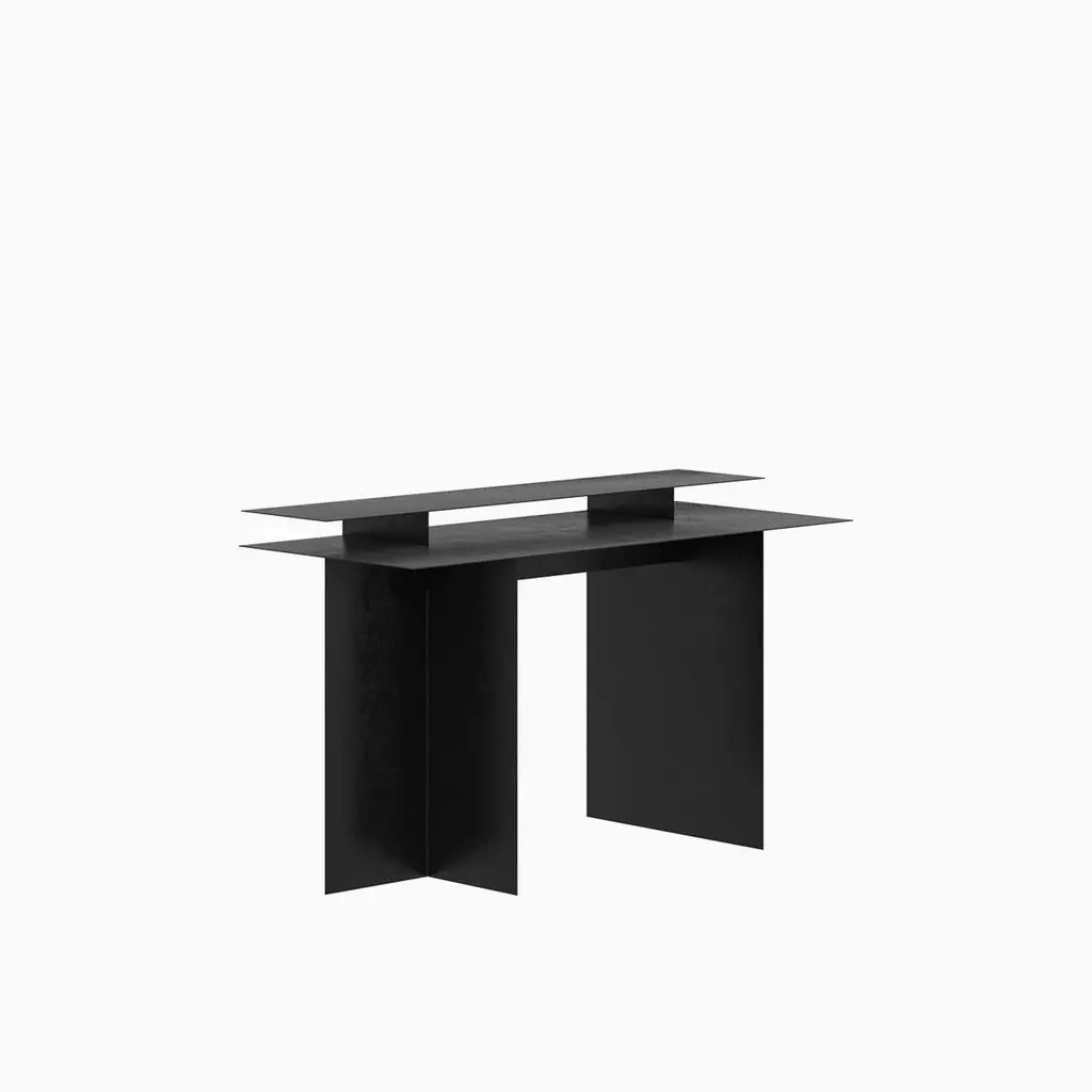 Conceptualized in 2023 by Leonardo Floresvillar, and crafted by hand with galvanized aluminum, coated with matte powder coating. The Ángulo Desk was designed with two surface heights to work comfortably on a computer at your studio or at your home office.