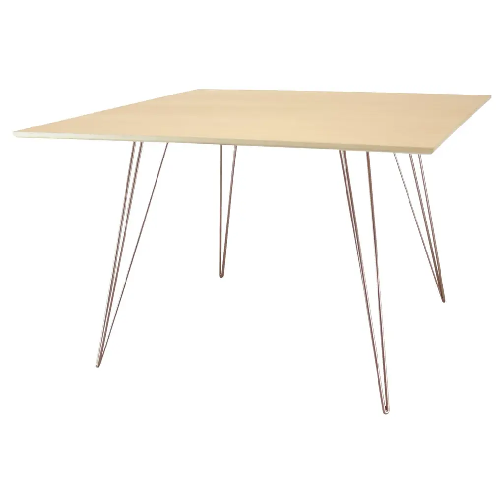 A thin, elegant and light desk that can be customized to any color desired. This handcrafted item perfectly blends industrial hairpin legs with a bevelled wooden top. The irregular beauty of its natural wood combined with its simple elegant base creates a timeless, original design.