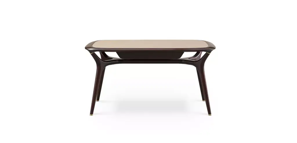 With its solid wood structures and streamlined lines, the Winch collection is inspired by the beautiful sailing ships of the 1950s. Every detail is executed with the highest level of craftsmanship. Like a sail stretched over its masts, the desk top seems to wrap around its four legs.