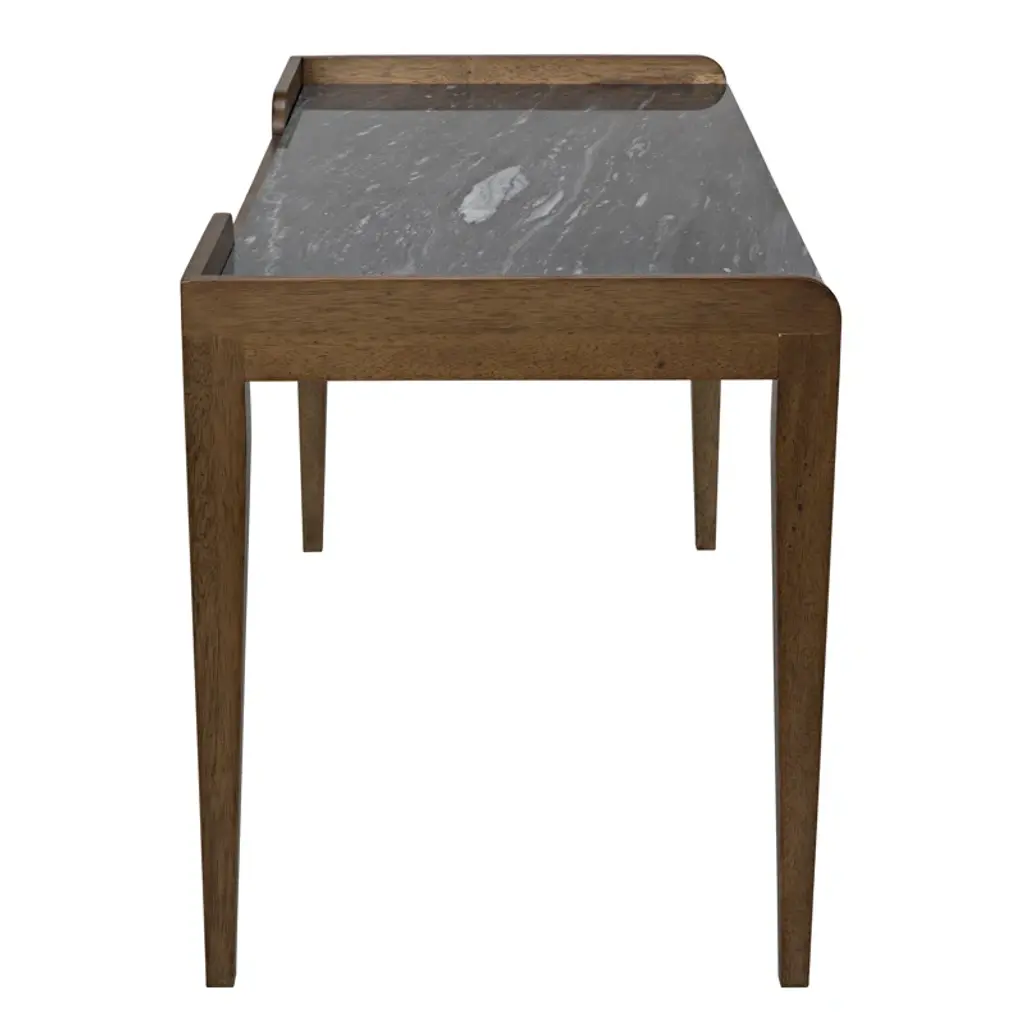 This desk is where classic design meets contemporary flair. Its standout feature is the night snow marble top, providing a luxurious surface that elevates any home office or study. Crafted with a bleached walnut base, this desk seamlessly blends traditional craftsmanship with modern aesthetics. Its finished back ensures it looks good from any angle, making it a versatile addition to your space.