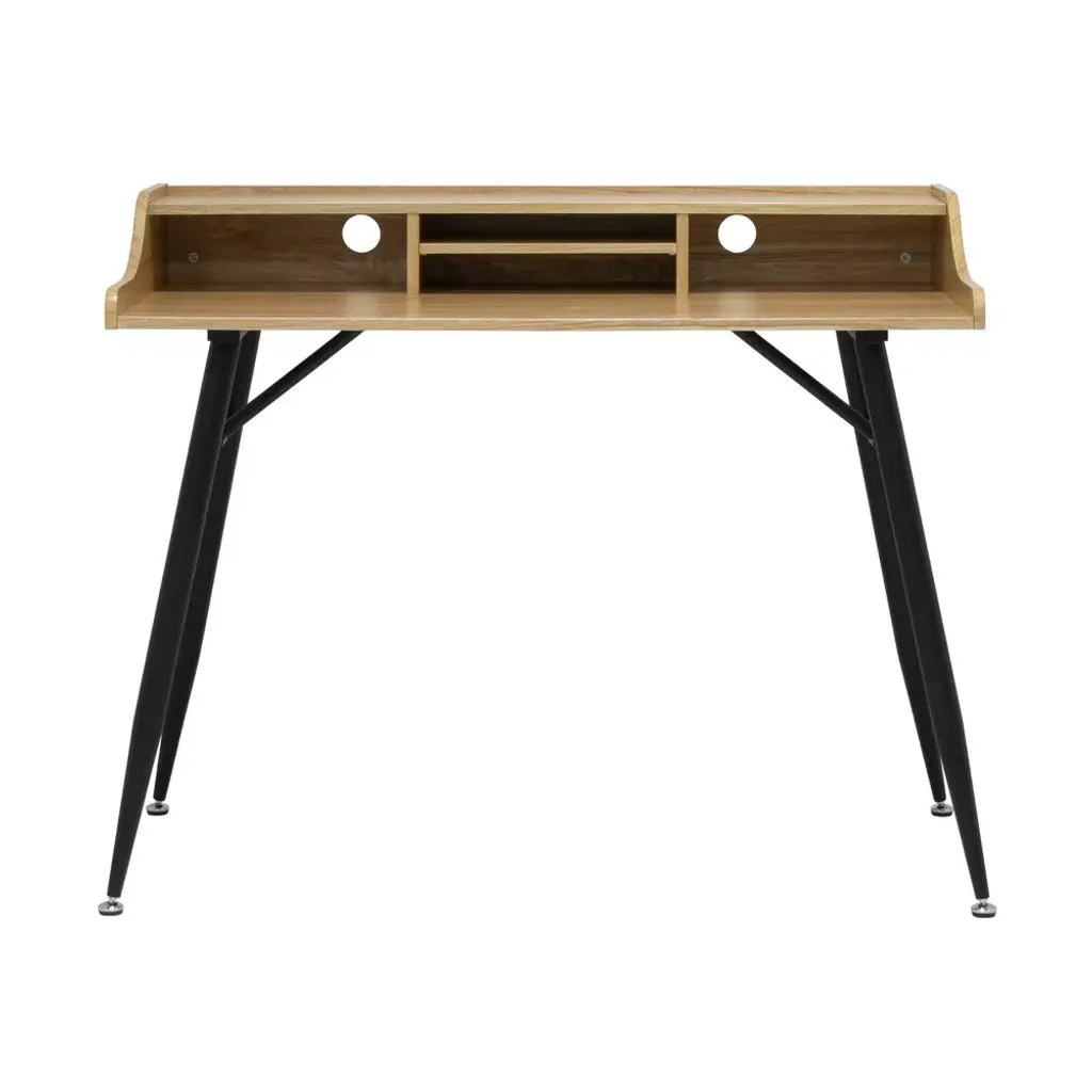The Woodford 45” Wide Modern Secretary, Writing, Desk with Storage Hutch and Metal Tapered Legs is a modern take on a classic, space-saving design. The hutch is sectioned to provide cubbyholes for supply or paper organization. The back panel of the hutch has cable management holes for organizing your cords. The hutch’s shelf can be installed inside the left, right or center section. The durable, metal legs are powder-coated to prevent scratches or corrosion. Perfect for your home office or bedroom this desk is perfect for a laptop workstation for small spaces.