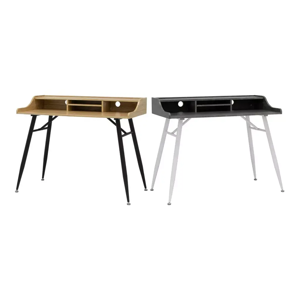 Woodford Writing Desk With Low Hutch Graphite/ash - Calico Designs: Metal Frame, Laminate Surface, Hutch Storage