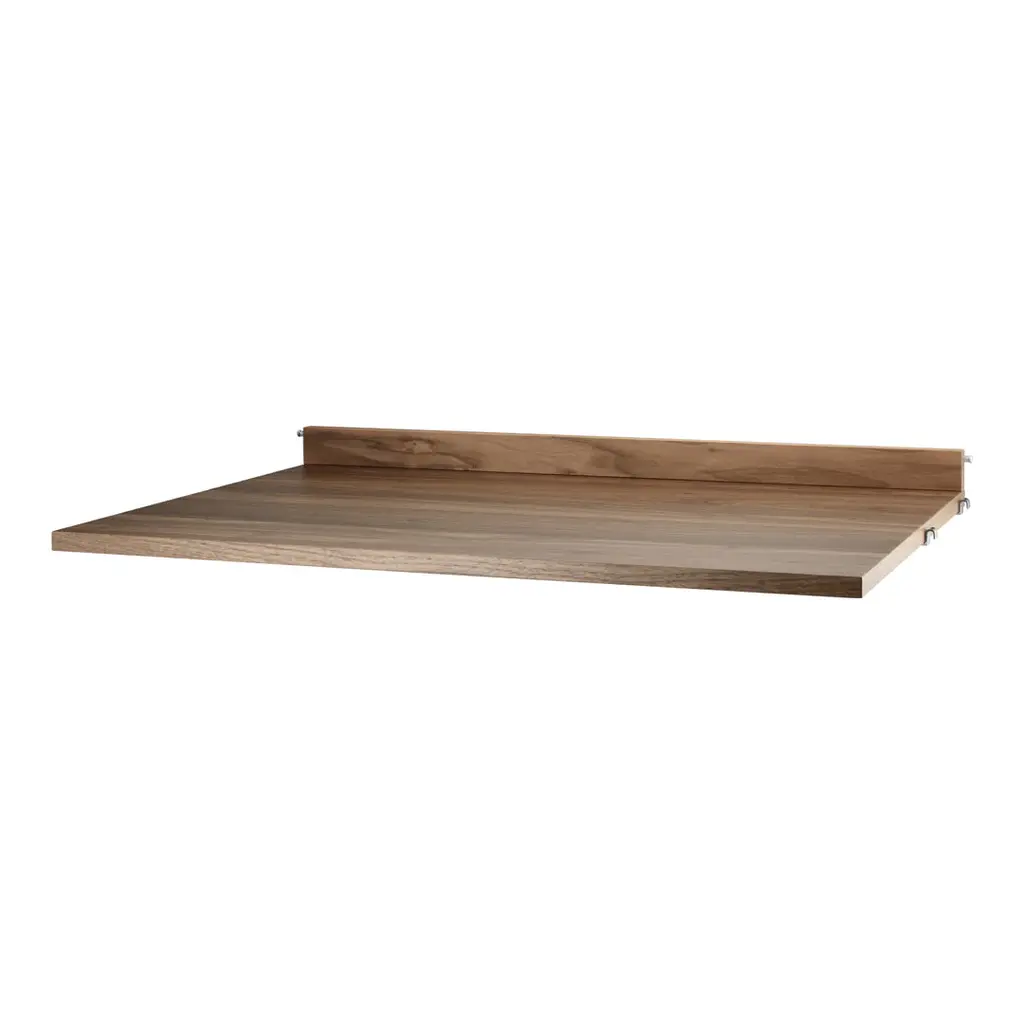 The work desk is available in one size, 78x58 cm and fits into wire panels from String® System with depth 30 cm. The work desk can easily be adjusted to your preferred height and can be used in an office, kitchen, hallway, or any other room where you might have the need for an additional table. Make your workspace complete by mounting a works drawer underneath the work desk where you can store pens, notebooks, and such. Each packaging contains one work desk, one ledge to place against the wall to stabilize the work desk along with brackets. Choose among different colours and wood types.