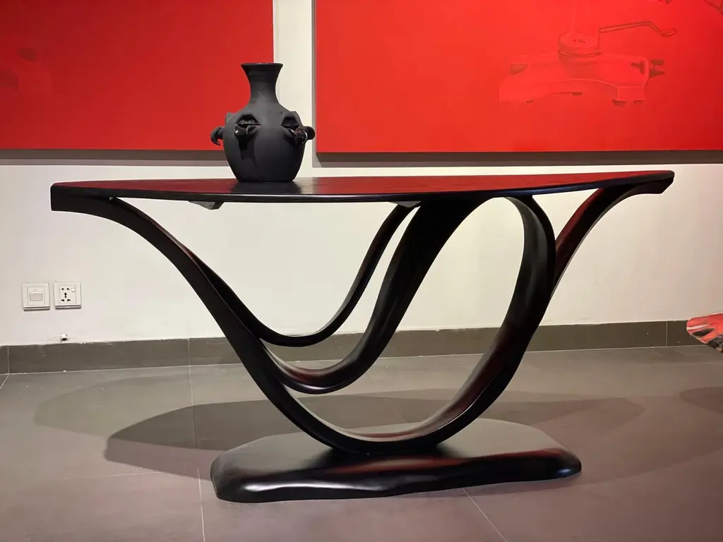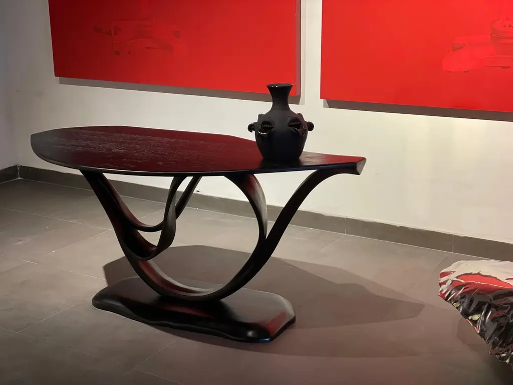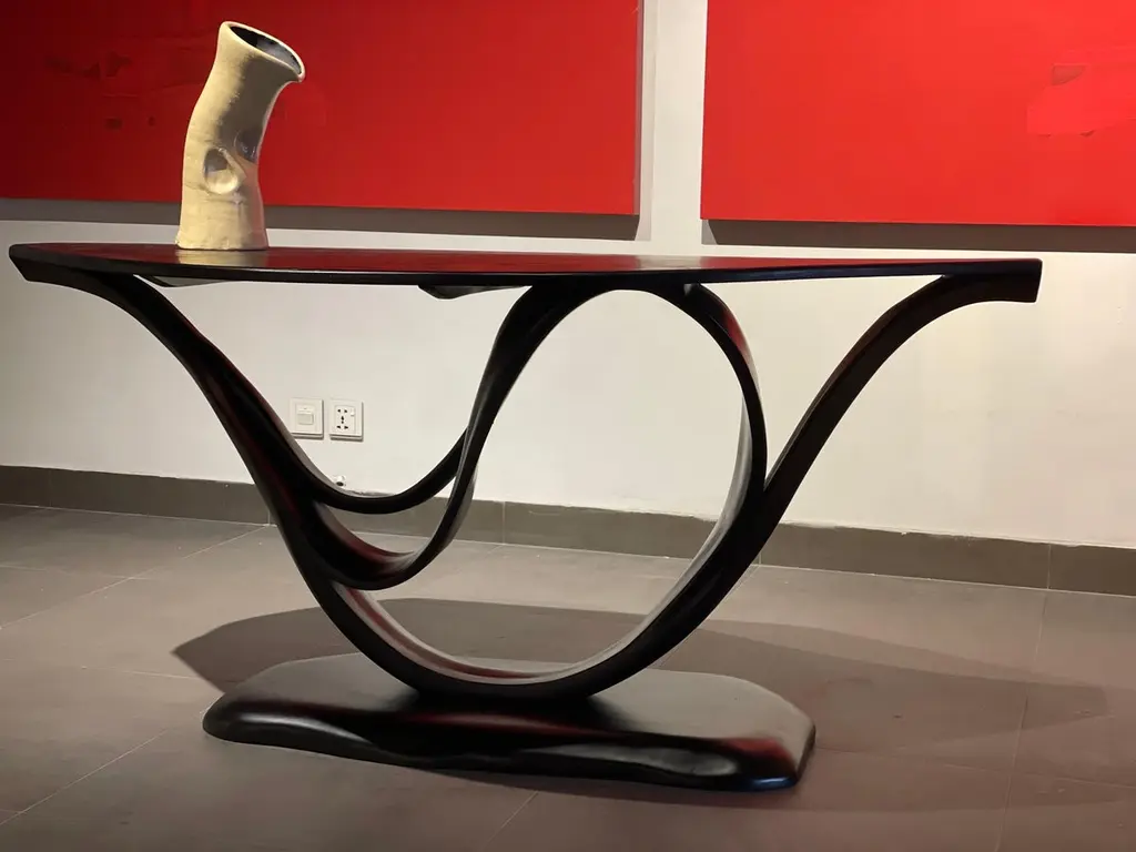 This is the Working Desk No. 1 of the Studio's Fluentum Series.The construction of the table is a clean design; showcasing details and flows of a bent-wood design. Wood emerges smoothly from the structure to create a harmonious flow; following the design ethos of the Fluentum Series. The piece creates an element of presence in a subtle manner; providing a unique style to any working space.The dimensions and the design of the top are customizable. The Studio has taken its exploration of wood further with the Fluentum Series. This Series uses techniques and skills learnt over the years to create works that embody details which are unique to the Studio's design esthetic and the craft of bending wood. These techniques allow the natural flow of the wood to take the reins of design; therefore, no two pieces are exactly the same, making each piece unique.Other points worth knowing:- The design may vary slightly from the piece in the pictures since each piece is handmade.- You can choose from an array of finishes.- The dimensions of the piece are customizable.