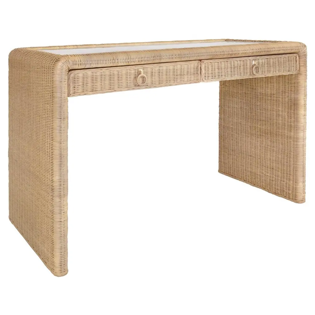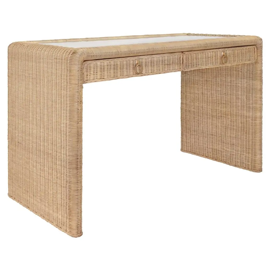 Worlds Away Adrien Coastal Beach Natural Woven Rattan Desk