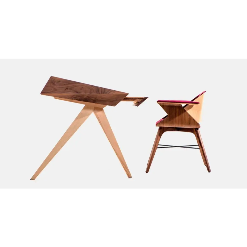 Wow desk by Alexandre CaldasDimensions: W 100 x D 80 x H 76 cmMaterials: Solid walnut wood and ashMaterials available in ash, beech and walnutDimensions available: W 100, W 120, W 150, W 170Our values lie in the respect, protection and sense of continuity towards our natural resources, our roots must be preserved, maintained and cared so they can keep inspiring us as well as our future generations.We are committed to be a sustainable brand; We feel obligated to respect the purity of the materials we use in our pieces giving them the importance they deserve and making products that can be cared through generations with maintenance and repair. Portugal has centuries of history in woodworking, we draw honoring that tradition and combining it with state-of-the-arttechnologies, always trying to produce furniture with a high-level practical value and connecting our ancestry’s generations with the ones to come.Every masterpiece we make represents a tribute to the materials we use. This vow of respect represents the value of our collection and makes it possible for us to ensure the quality of our pieces, giving us the confidence to mark them as “Made in Portugal” with the distinctiveness it deserves.