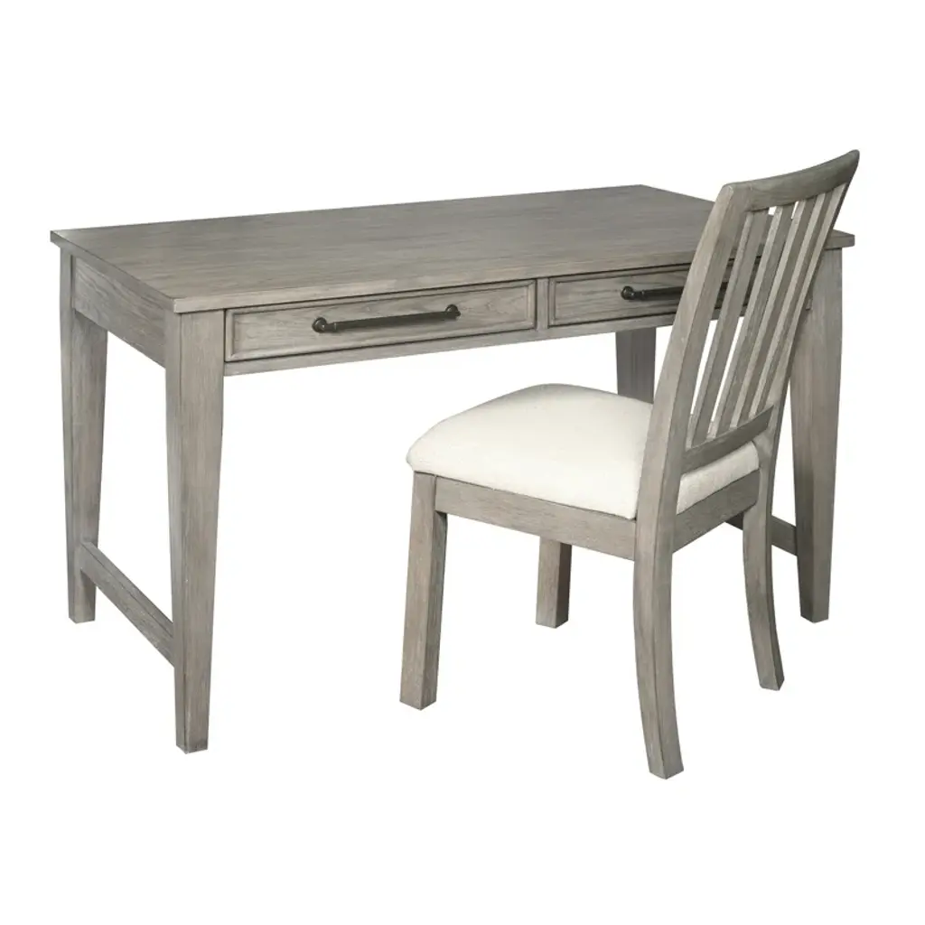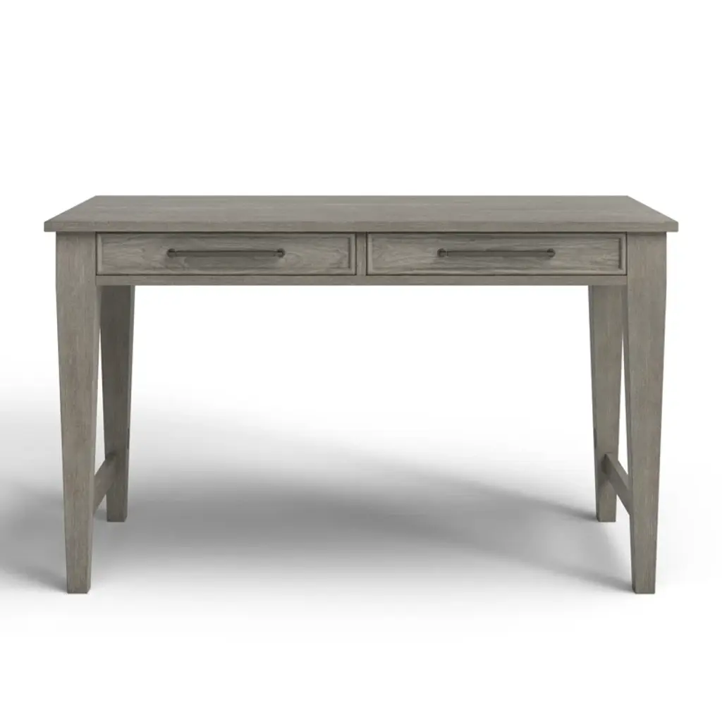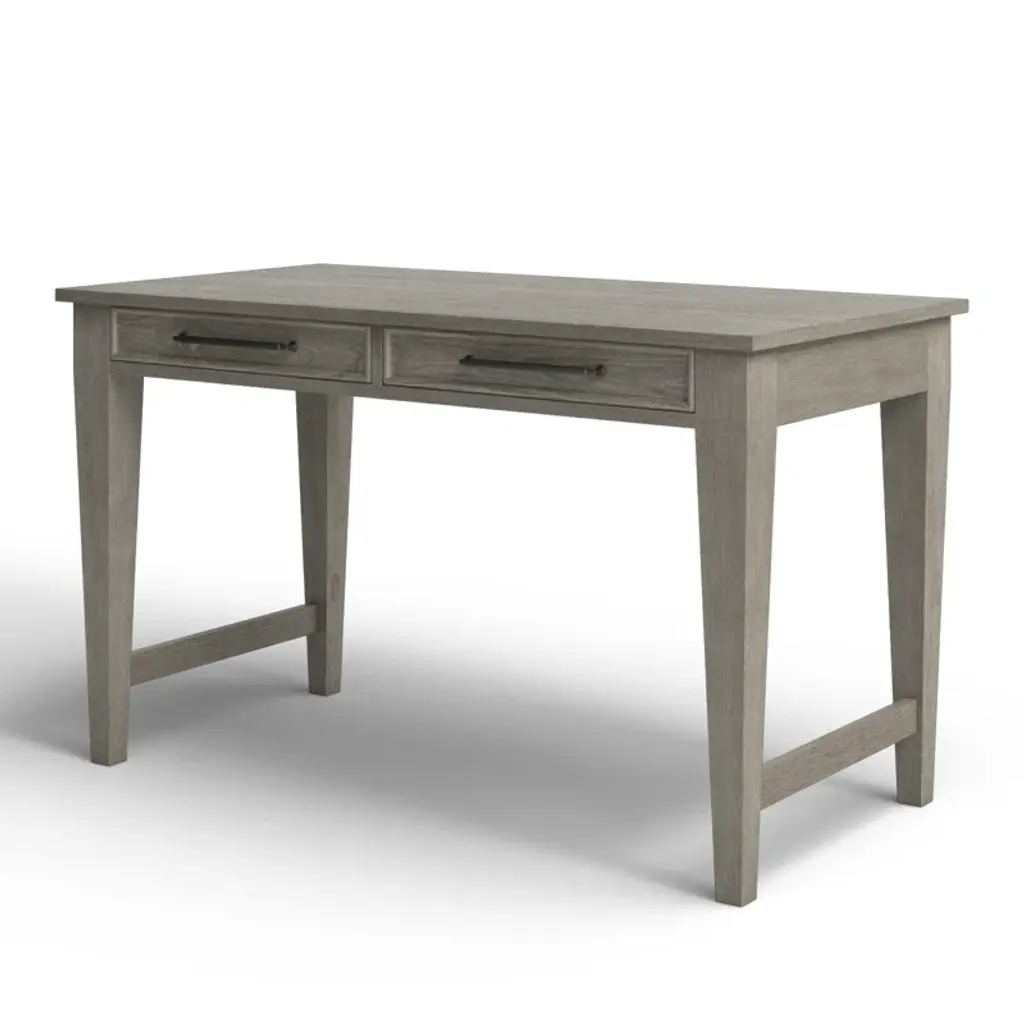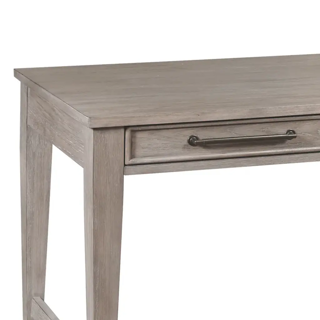 A natural fit for a home that embraces transitional, rustic decor, our Alcone 2 drawer desk creates a comfortable feeling, especially in small areas. This desk offers a spacious top surface that provides all the room you need for desk essentials like your laptop, pens, and your favorite drinking mug, while desk drawers open and close on smooth metal guides for easy access storage of miscellaneous office items. The wire-brushed grey finish ensures this piece seamlessly accents any home office's color scheme, making it the perfect addition to any home office or workspace.