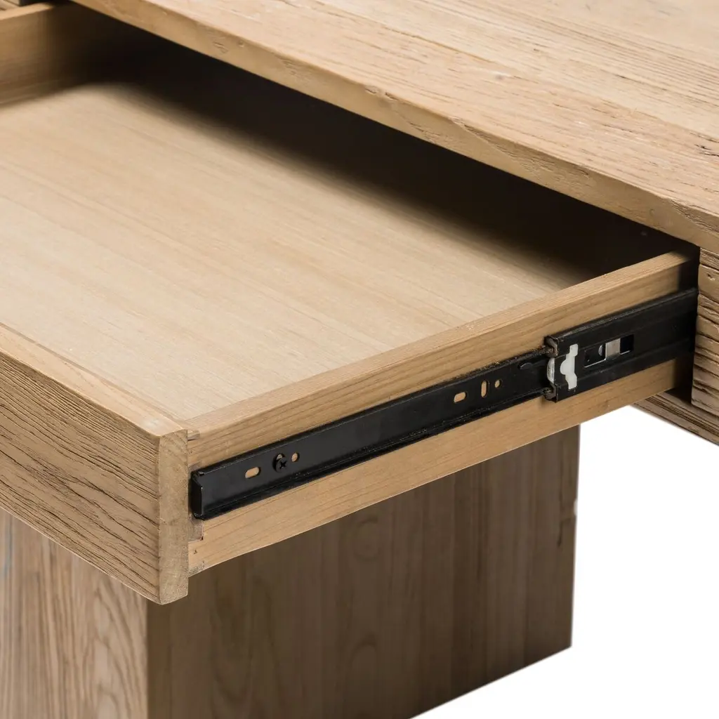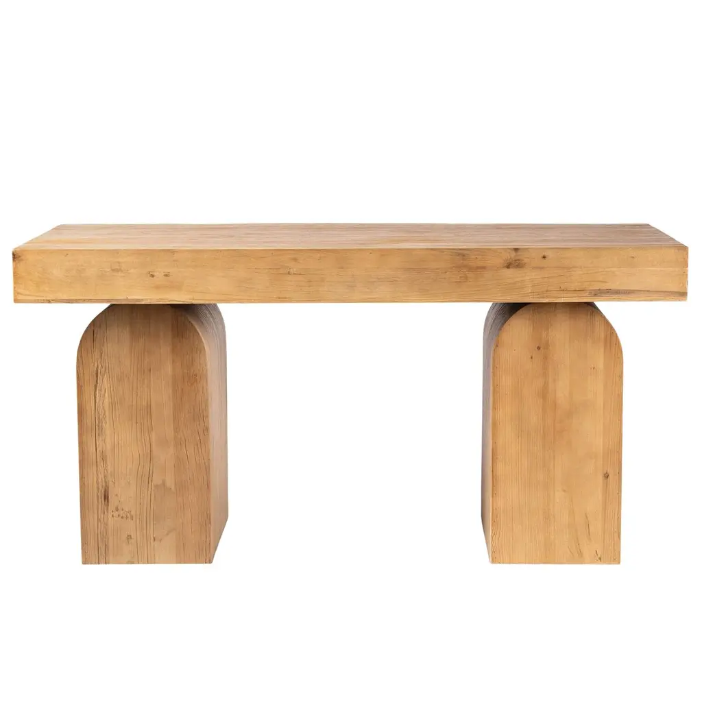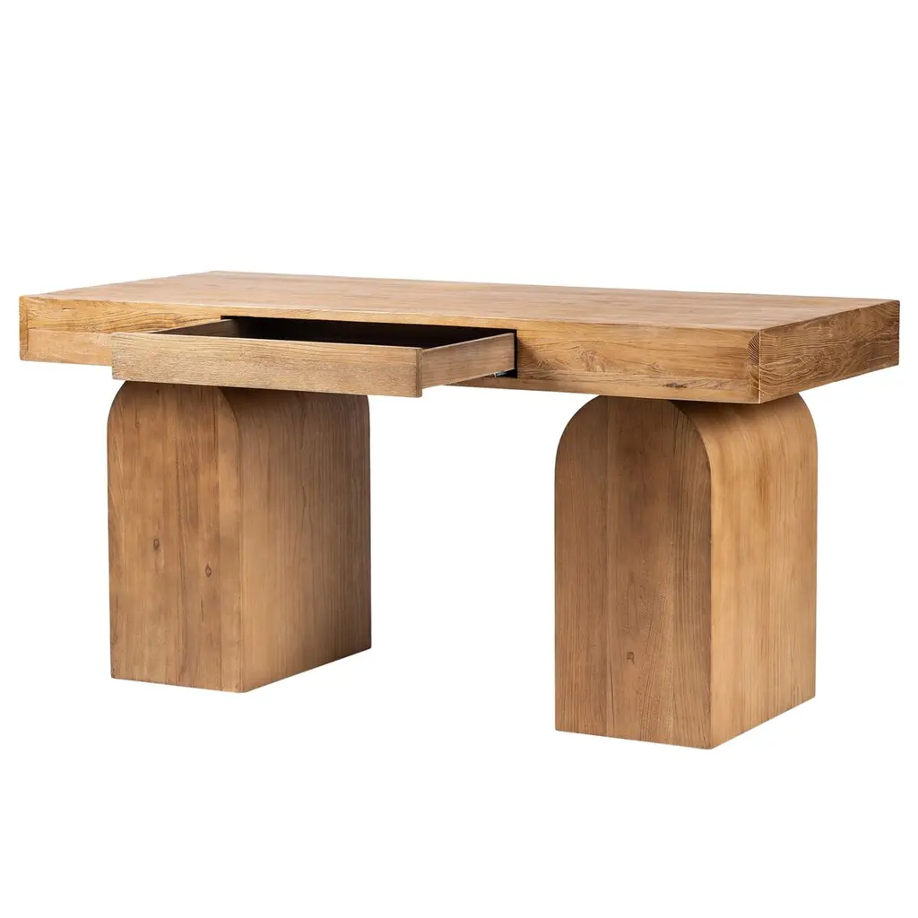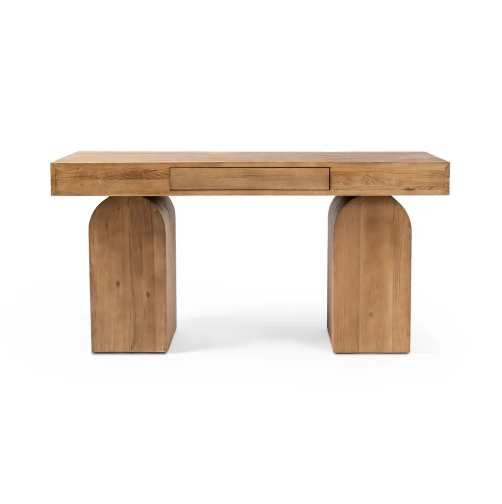 Handcrafted of reclaimed elm, this sculptural desk shows off its unique grain and knots with pride. Striking enough to serve as a console table in an entry or a living room, it has a drawer where you can stash items out of sight.