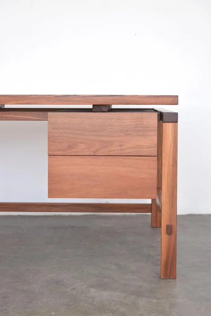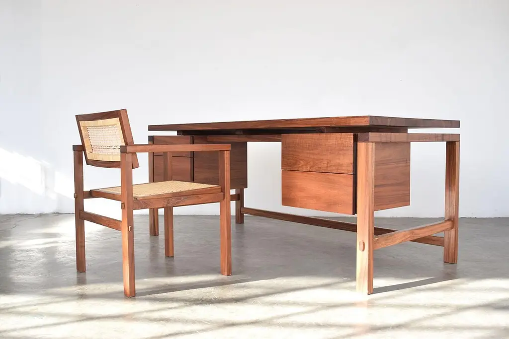 The "Xitle" desk is part of ADN Studio´s Volcan Collection. This collection seeks to go back to basics. It is a subtle and refined interpretation of the archetypical modern furniture.Inspired by the architecture, culture, history and aesthetic of Mexico City, Volcan takes the richness of shapes used by the great masters of Mexican modernism and by the vernacular designs and distills them into clean lines and pure geometric shapes that endow each piece with a unique identity and character.The collection stands for the unparallel luxury of simplicity. The "Xitle" desk is a Classic yet contemporary design, with a timeless quality.Made in solid wood and natural rattan fibers.