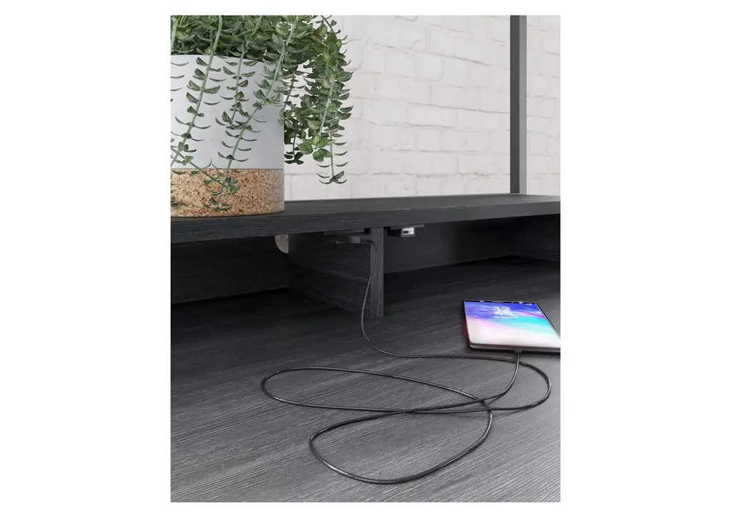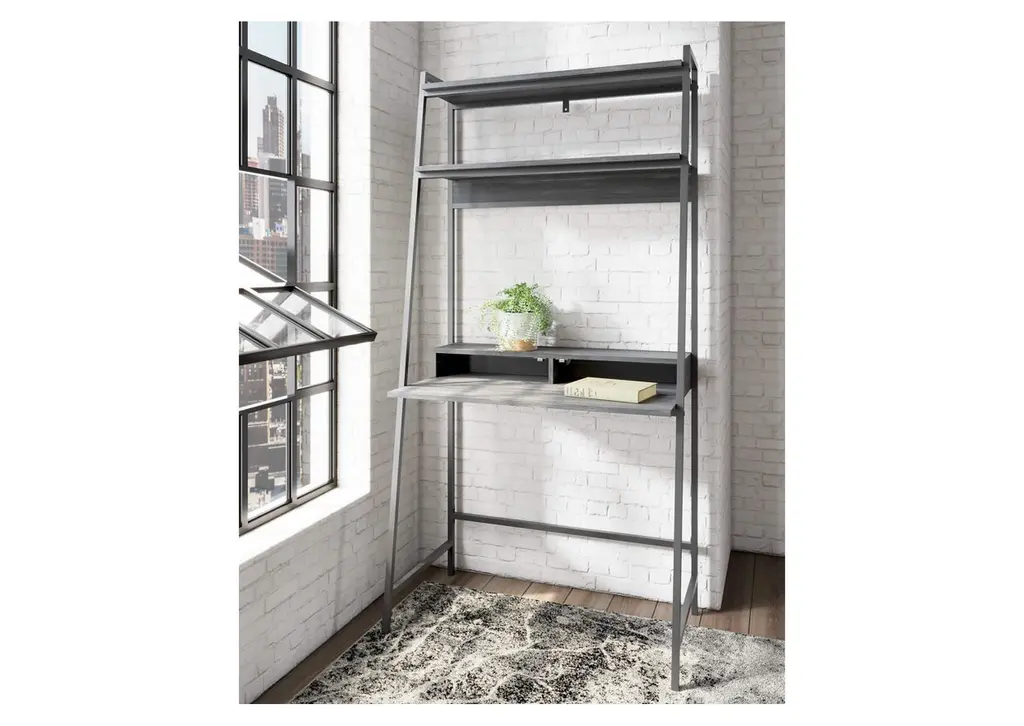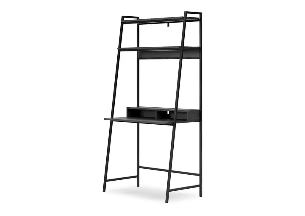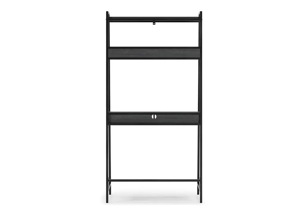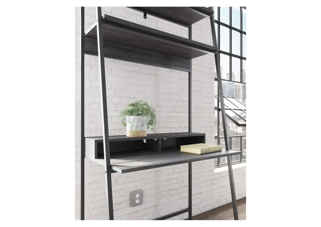 Elevate your home office with the simply sensational Yarlow desk and shelf. Pairing a dark wood grain look with a black metal frame for modern appeal, the minimalistic desk provides a convenient work surface with incorporated cubby shelves (with cutout for wire management) and two upper shelves for extra storage and display space. Its open-concept design, sleek aesthetic and built-in charging ports help you make the most of small space living. Weight 57.000 lbs. (25.65kgs.)