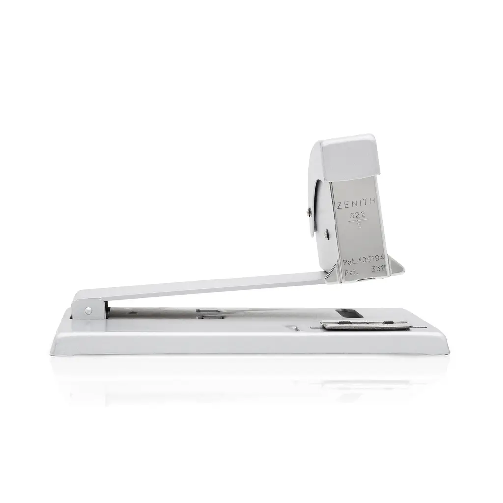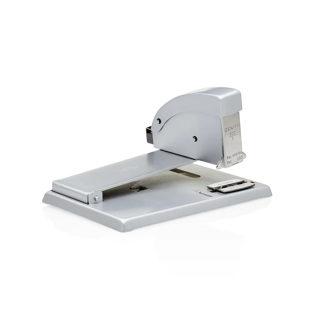 Staple folded sheets in a notebook or large-format paper with ease by using this practical design from the Zenith series. Made by Balma, Capoduri & C., the Zenith name has become synonymous with workspace efficiency. This tabletop stamp stapler is specially designed to staple up to 40 sheets of paper with 24/10 staples and up to 20 sheets with 24/6 staples. Thanks to the generous stitching depth, the user can quickly staple larger sheets of paper with one smooth press of the curved handle. Similarly to other Zenith products, the 522/E Tabletop Stapler is made from metal and features a lead-free enamel finish. Every stamp stapler is tested individually and comes with the Zenith lifetime warranty against manufacturing flaws.