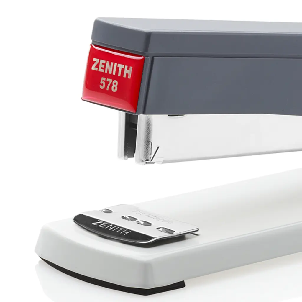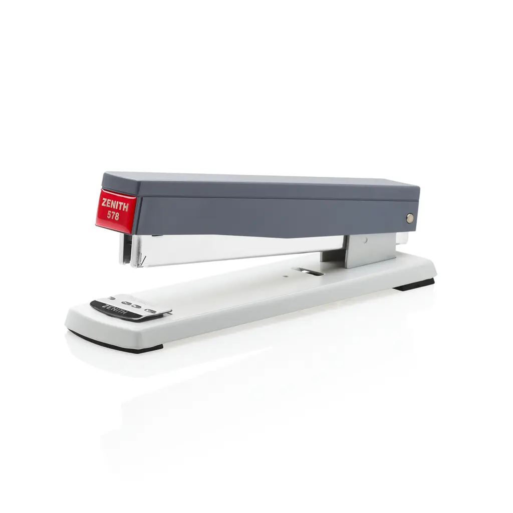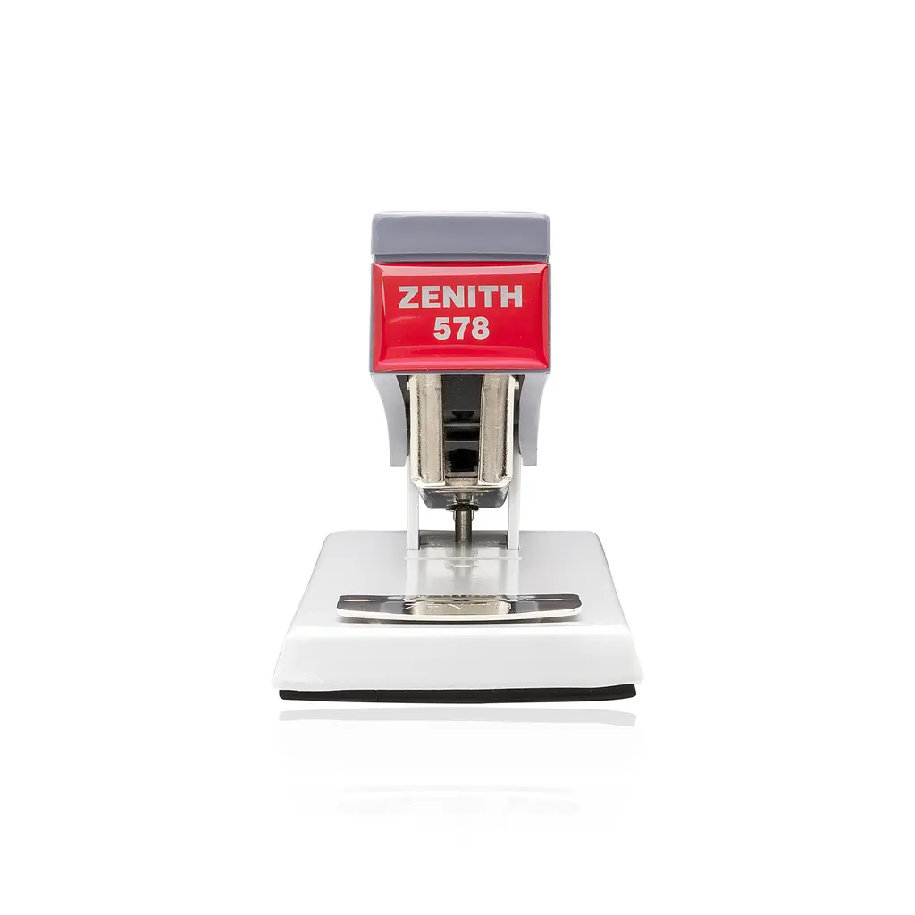 Innovation meets Italian design in the Zenith collection of staplers. Launched in the 1940s by Italian company Balma, Capoduri & C., the series has become incredibly popular over the years thanks to a blend of excellent craftsmanship, function, and elegance. The Zenith 578 Tabletop Stapler focuses on efficiency with an impressive stapling depth of 130 mm and a capacity of 250 staples. Sleek and stylish, this heavy duty office stapler has an elongated shape to accommodate more staples and to offer more versatility. The user can staple even larger sheets of paper with ease, up to 35 at a time with the 24/8 and 26/8 staples. Made with a metal base and body, this heavy duty office stapler features a shockproof ABS plastic cap and scratch-resistant feet. A lead-free enamel paint finish protects the metal body from corrosion and wear.
