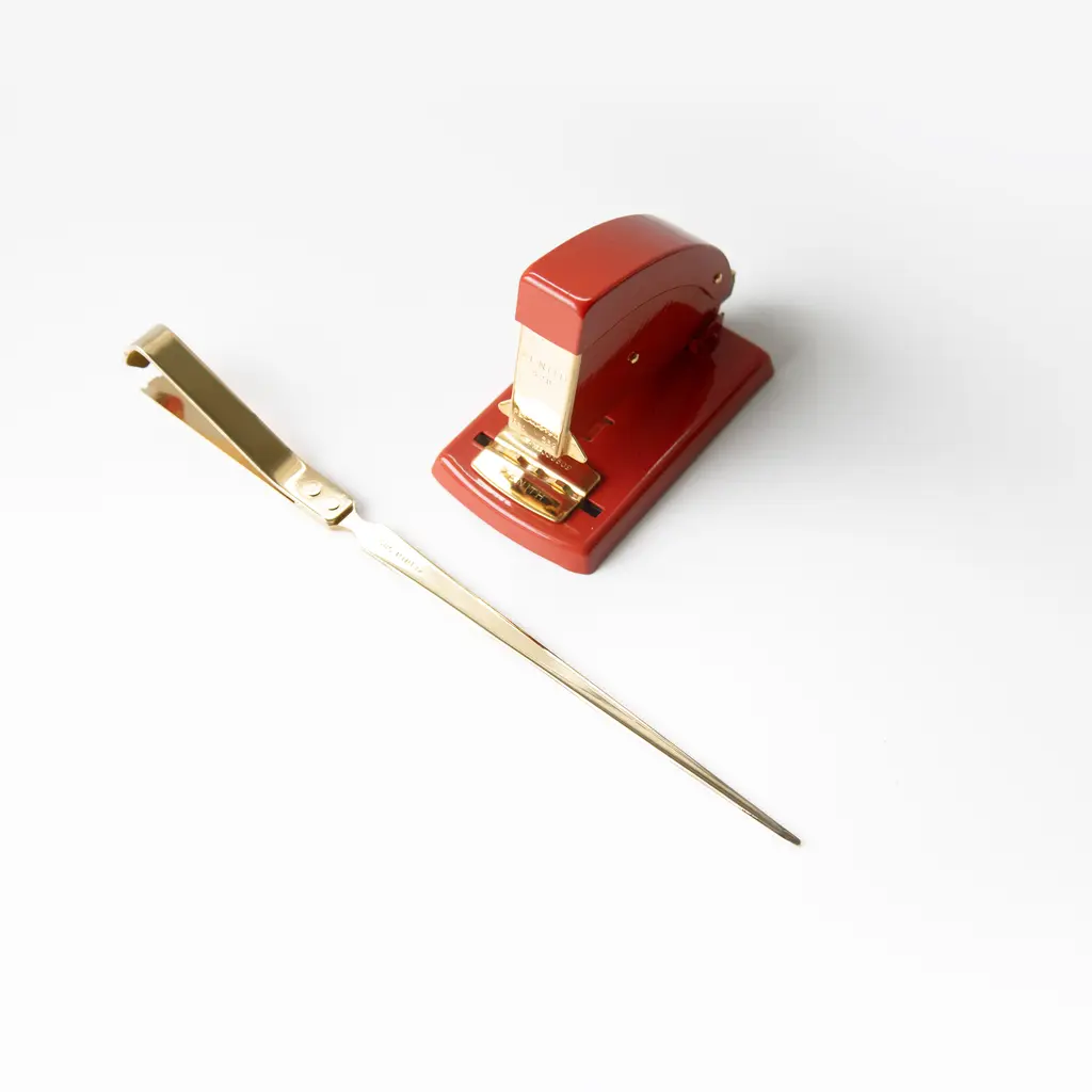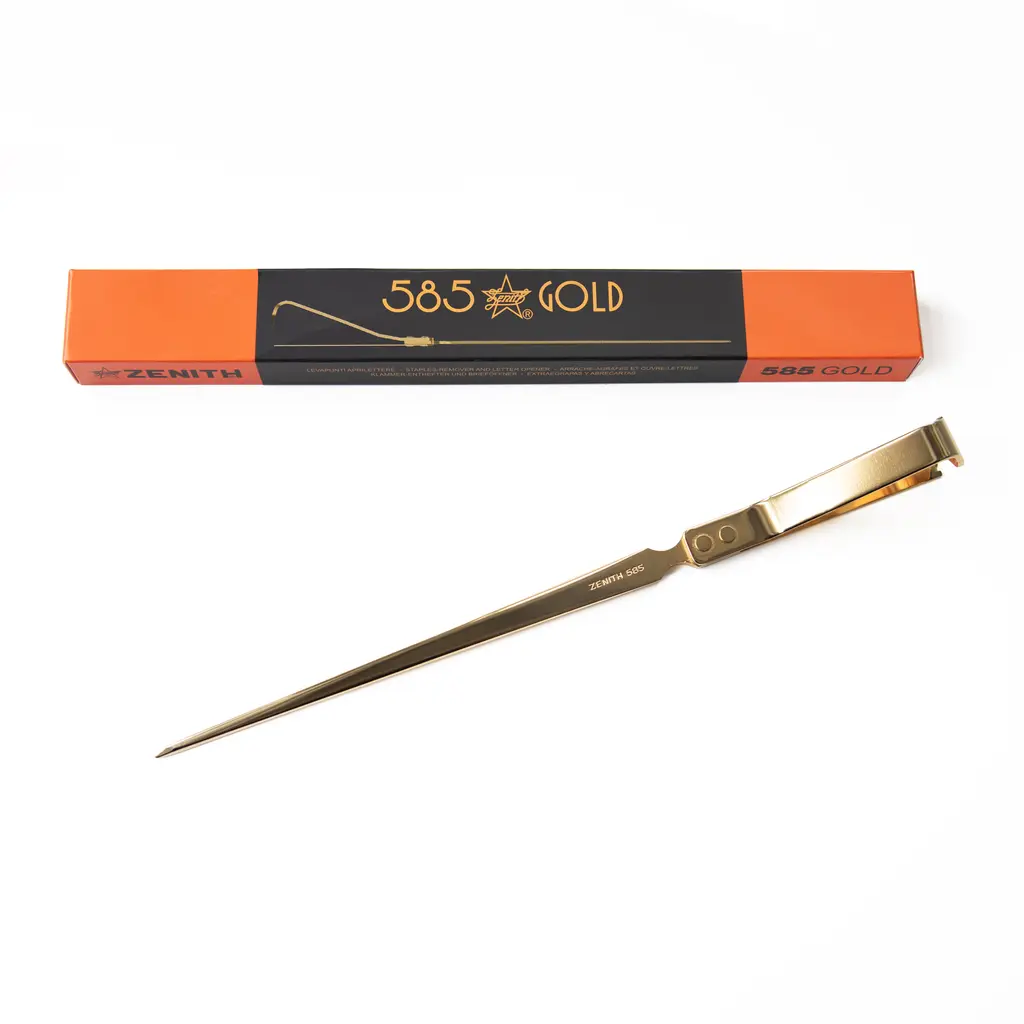 Discover the Zenith Gold Desk Duo, a sophisticated addition to your workspace featuring a desk stapler and a staple remover/letter opener. Crafted with Italian design in mind, this stapler is made from durable metal, adorned with golden details, and finished with lead-free enamel paint resistant to wear and rust. Its elegant design and beautifully crafted packaging make it an excellent gift choice. Complementing the stapler, the staple remover/letter opener boasts a luxurious golden finish that adds a touch of elegance to any desk. This versatile tool not only serves as a stylish letter opener but also efficiently removes various types of wire staples. Each Zenith staple remover undergoes meticulous individual testing to ensure it meets the brand’s high standards, making it a standout piece for those who value both aesthetics and functionality.