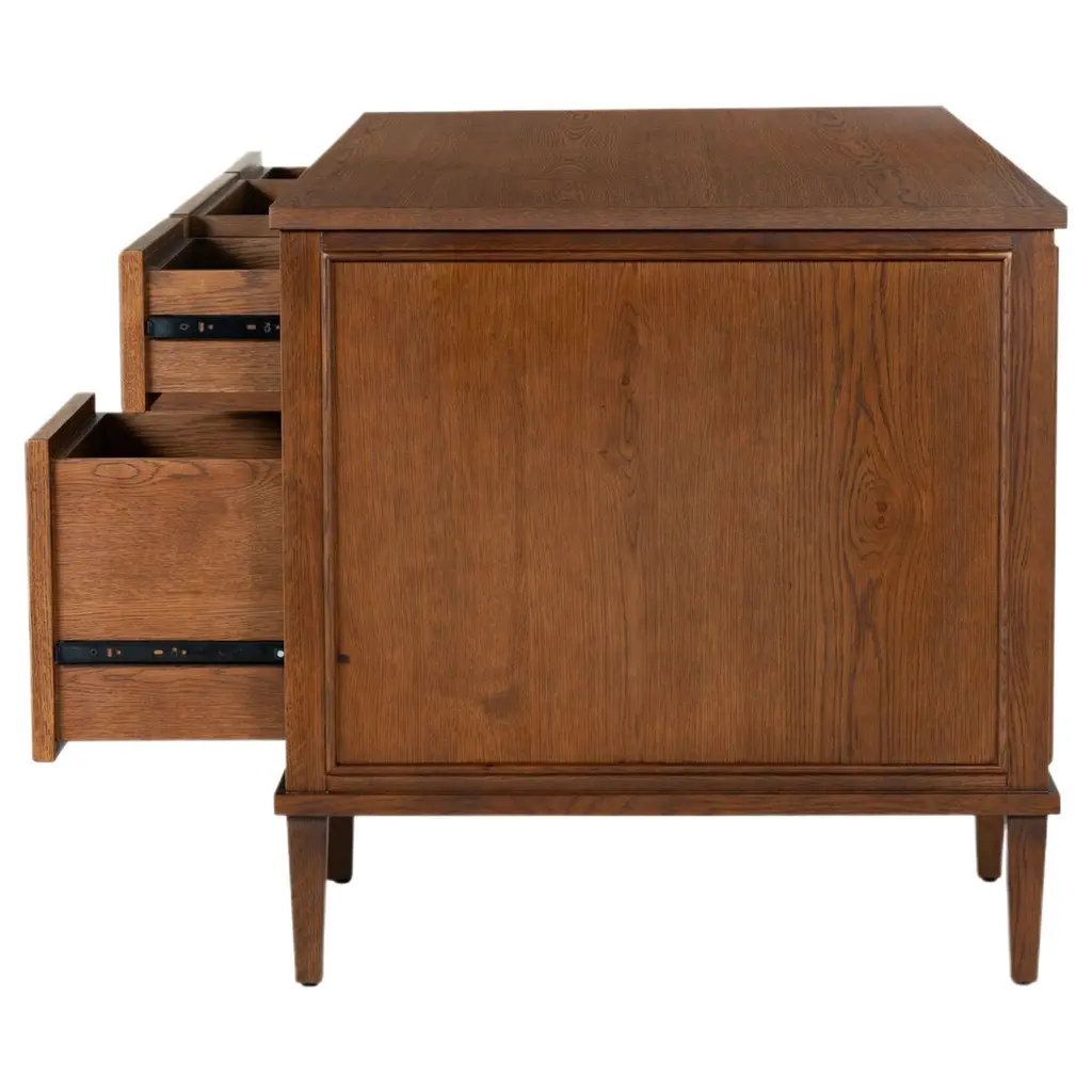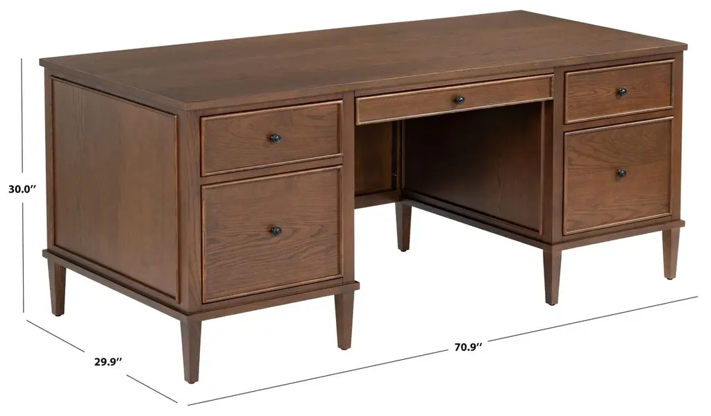 Introducing The Zyan, a five-drawer classic work of craftsmanship that seamlessly blends utility and aesthetics. This stylish and functional desk offers a timeless appeal, perfectly matching any home or office environment. The robust construction ensures durability and convenience, while the spacious, intricately designed drawers hold your essentials, creating a clutter-free work surface. Immerse yourself in the chic and practical design of this visually pleasing desk, where sophistication meets practicality. Elevate your workspace with the power of elegant simplicity.