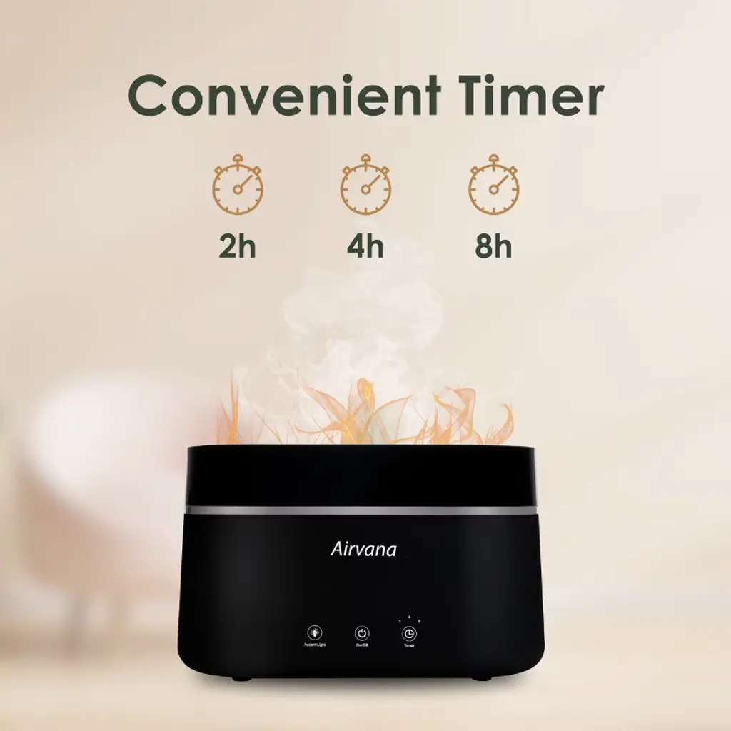 Elevate Your Space with the Airvana AquaFlame AV300HUM – A Stylish Cool Mist Humidifier for Wellness and Ambiance Experience the perfect fusion of functionality and style with the Airvana AquaFlame AV300HUM Cool Mist Humidifier. Designed for modern living, this small humidifier features ultrasonic vibration technology for efficient moisture delivery, making it ideal for home offices, dorm essentials, and apartment essentials. Its sleek tabletop design fits seamlessly into any room, while the captivating flame effect and mood-matching colors add a personalized touch to your space. Compatible with essential oils, it doubles as a relaxing diffuser and a plant humidifier for indoor greenery. With a convenient top-fill tank and built-in timer, this unit offers hassle-free operation and stylish comfort wherever you need it.