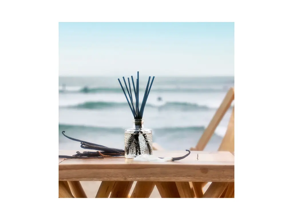KEY NOTES: - Sea Salt, Warm Vanilla, Teakwood ABOUT THE FRAGRANCE: Plunge into the blue horizon and escape into another realm, where worries are reduced to coasting on hypnotic rolling waves. A salty ocean breeze tickles the skin as the sun reaches its peak height of the day, leaving you to bask in a teakwood sling chair, lathered in a tonic of warm vanilla and coconut milk. Welcome in the rising tides to wash away the cares of the day. Voluspa invites you to take the scenic route, so you may always return for California Summers.