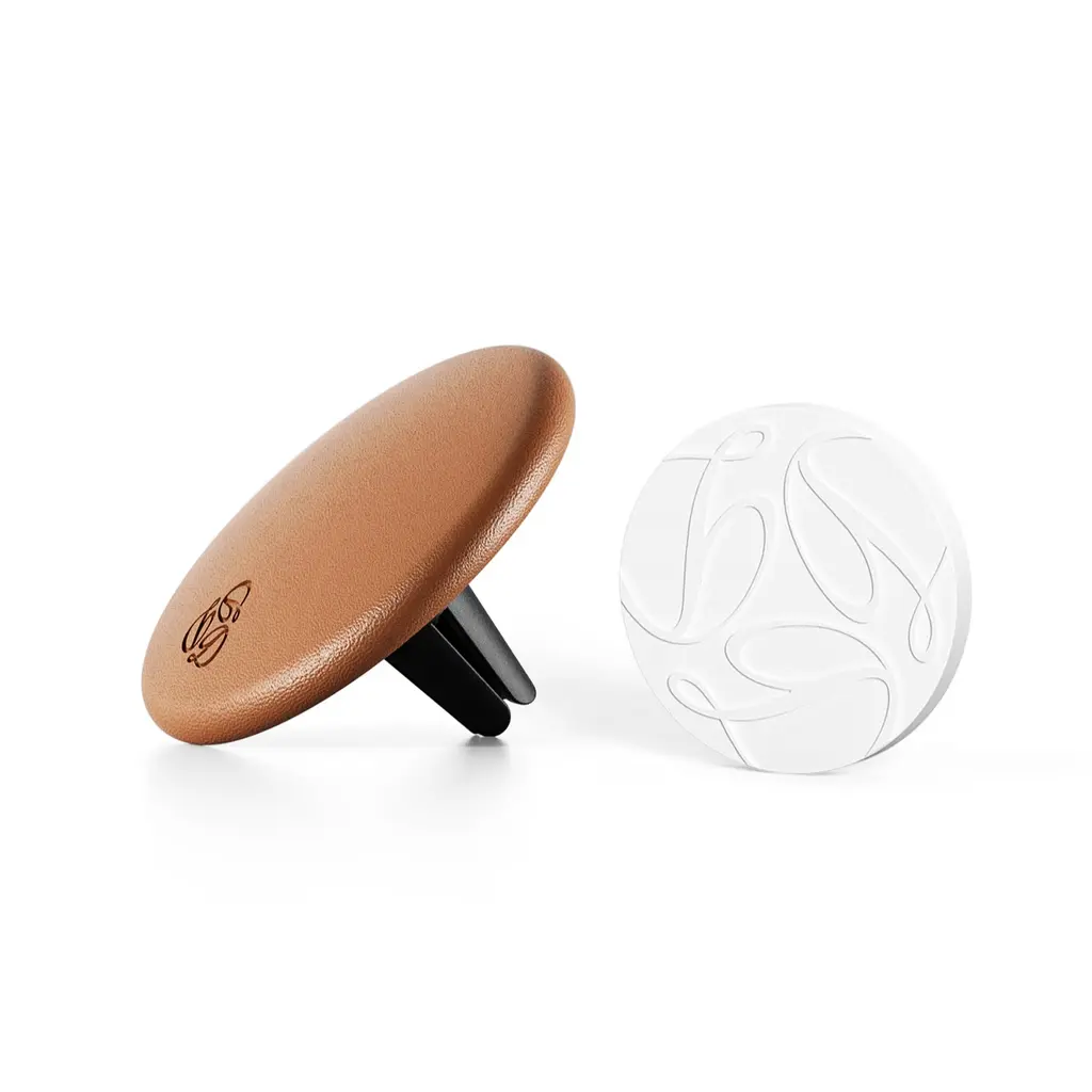 This set includes one lambskin leather case and one Fig scented insert. Enhance your driving experience with a sleek and sophisticated car diffuser designed for both style and function. The diffuser fits easily into most car air vents with its magnetic attachment, and the luxurious lambskin case adds an elegant touch, making it the perfect gift for car lovers.Infused with organic, plant-based fragrances, the Fig scented insert offers up to 2 months of long-lasting aroma. The adjustable switch allows you to control the intensity of the scent, providing a personalized experience. Refillable inserts add sustainability to the diffuser's elegance.