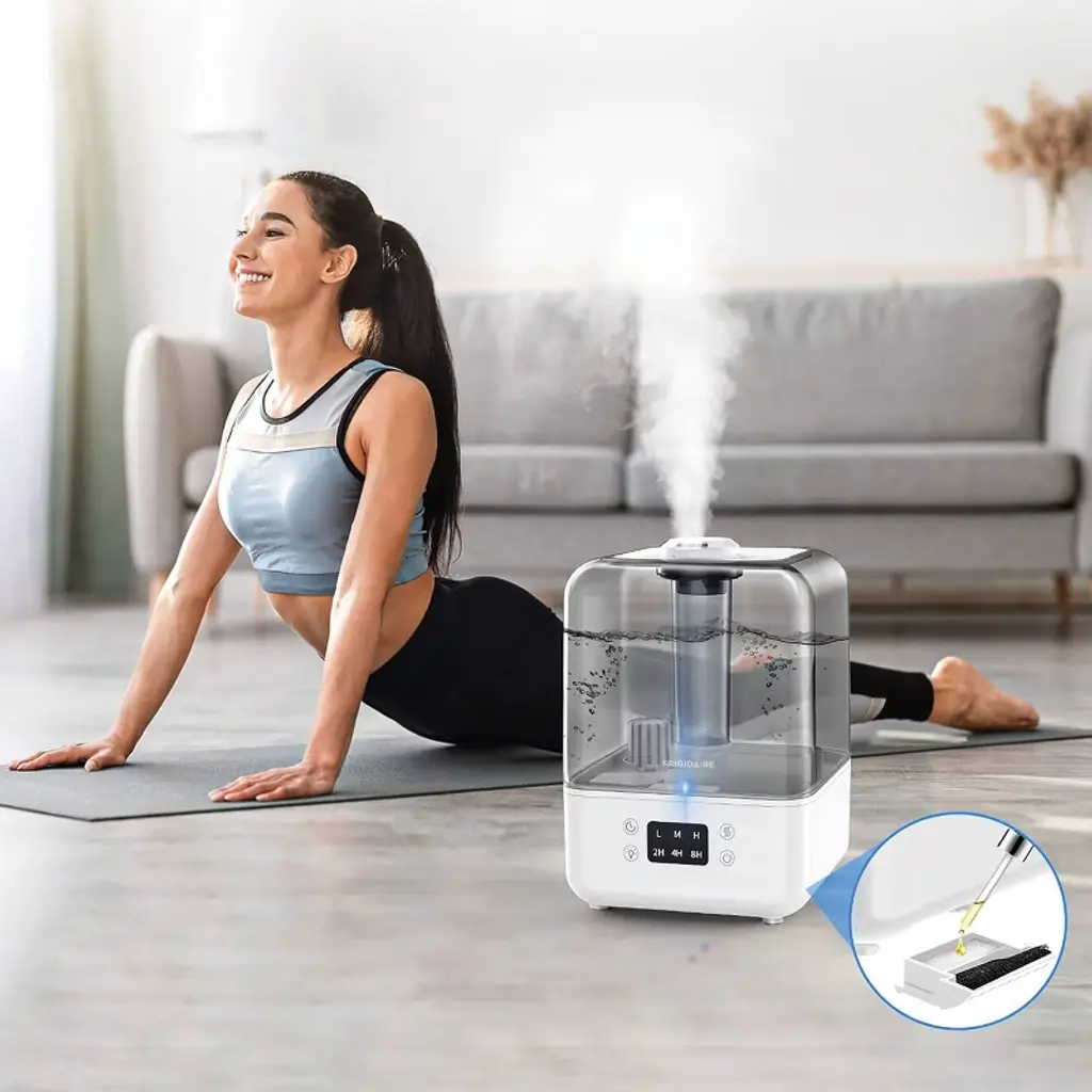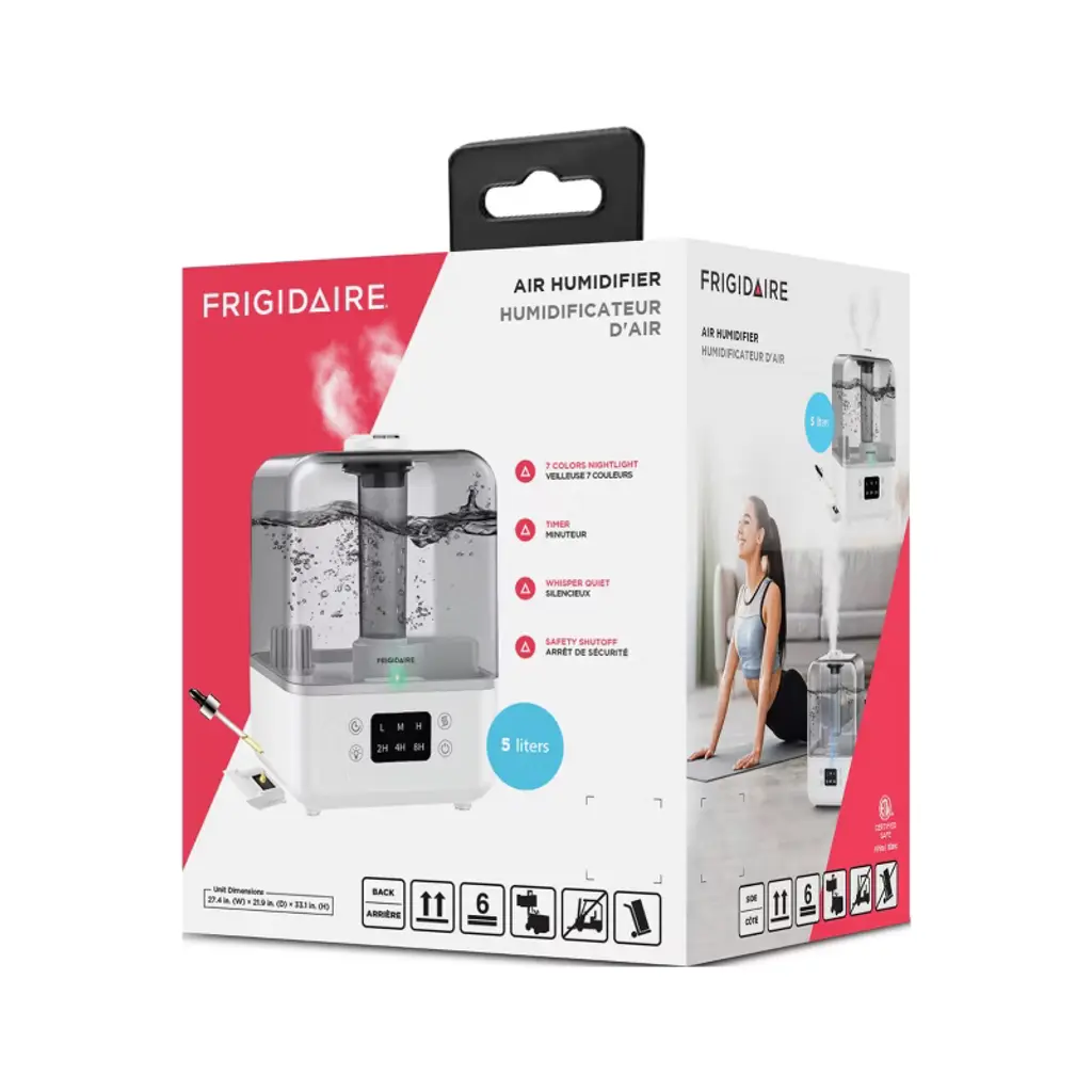 The Frigidaire Ultrasonic Air Humidifier with Cool Mist Diffuser uses ultrasonic technology to quietly disperse a cool mist, improving air quality and moisture levels. It also functions as a diffuser for essential oils, adding a calming scent to your environment. Ideal for bedrooms, offices, or living rooms, this humidifier enhances comfort and breathing while maintaining a peaceful atmosphere.