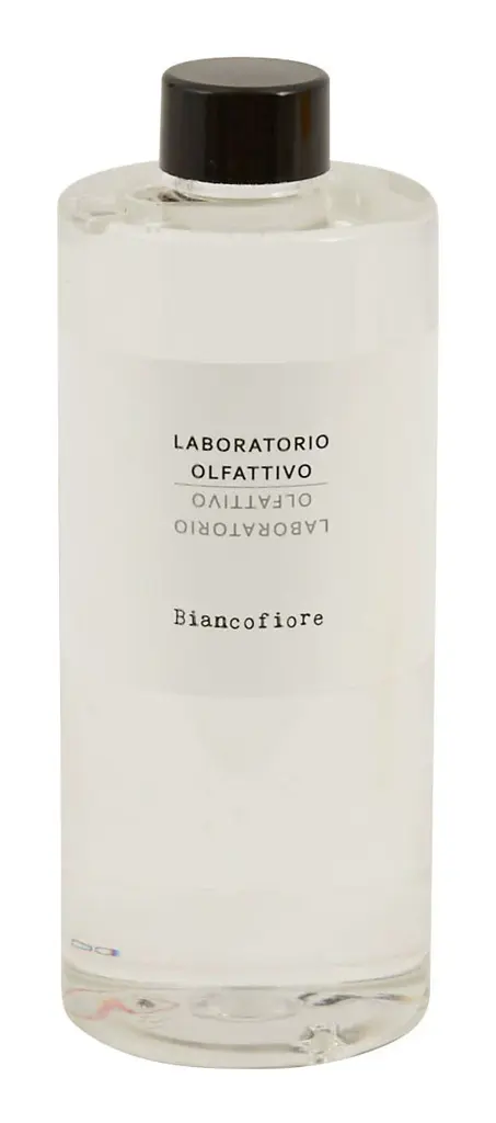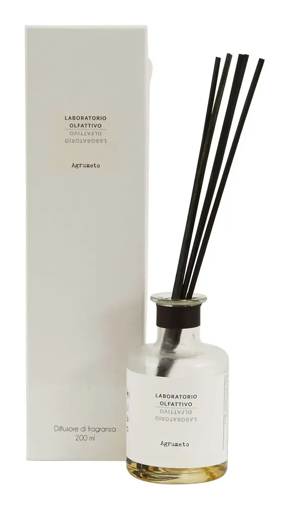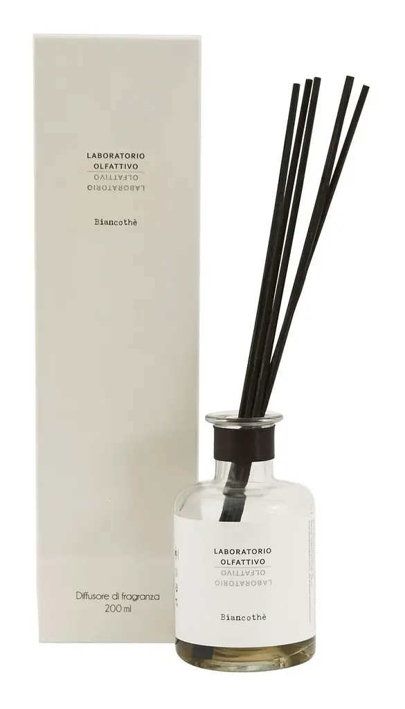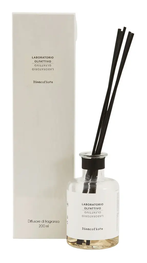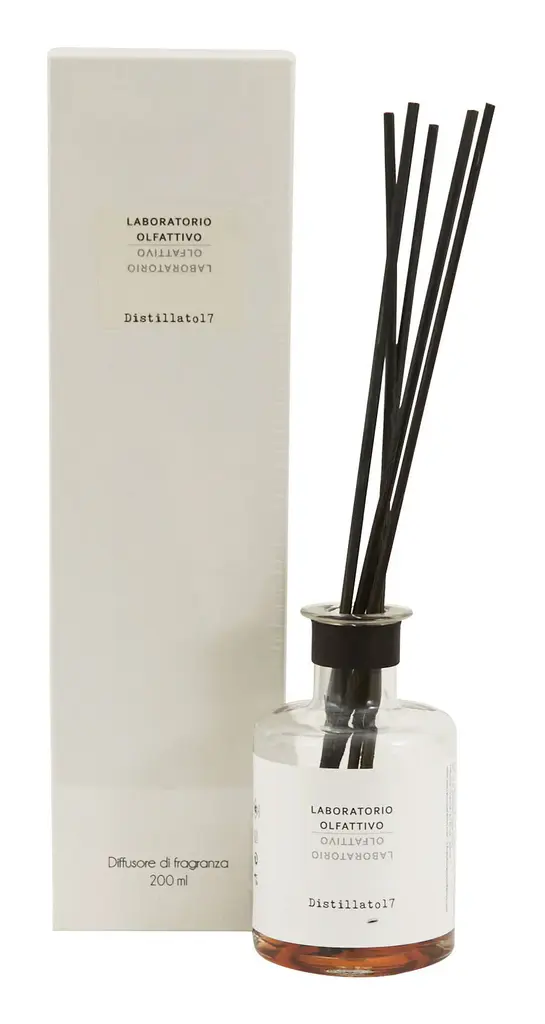 Fill your home with the indulgent scents of our Laboratorio Olfattivo Diffusers. Inspired by a love of niche perfumes, these luxe diffuser sets are artisan-made in Italy from an expertly curated mix of vibrant fragrances, which together evoke a specific memory or emotion. Housed in simple clear glass vessels, each one is paired with five balsa wood diffuser sticks, which will steadily spread its intoxicating aroma throughout your space. The perfect way to refresh any interior, choose from four enchanting scents. •five 11" balsa diffuser reeds•glass jar•natural fragrances mixed with alcohol base•fragrance lasts up to 3 months •to increase levels of fragrance, turn reeds weekly DIFFUSER•6.76 oz •2.75" diameter x 4.75"H REFILL•17 oz.•2.5" diameter x 7"H Scents BIANCOFIORE: apple, blueberry, watermelon, lily, rose of tahiti, jasmine, marine accord, coconut, sandalwood, rosewood, amberAGRUMETO: orange, mandarin, grapefruit, cassis, jasmine, musksBIANCOTHE: black pepper, pink peppercorns, bergamot, rose, apple, lily of the valley, musk, cedarDISTILLATO 17: rum, orange, cognac, candied fruits, powdery notes, vanilla, cedarwood, amber woods