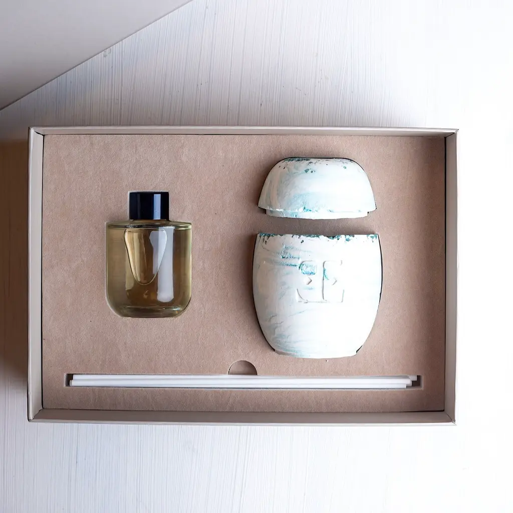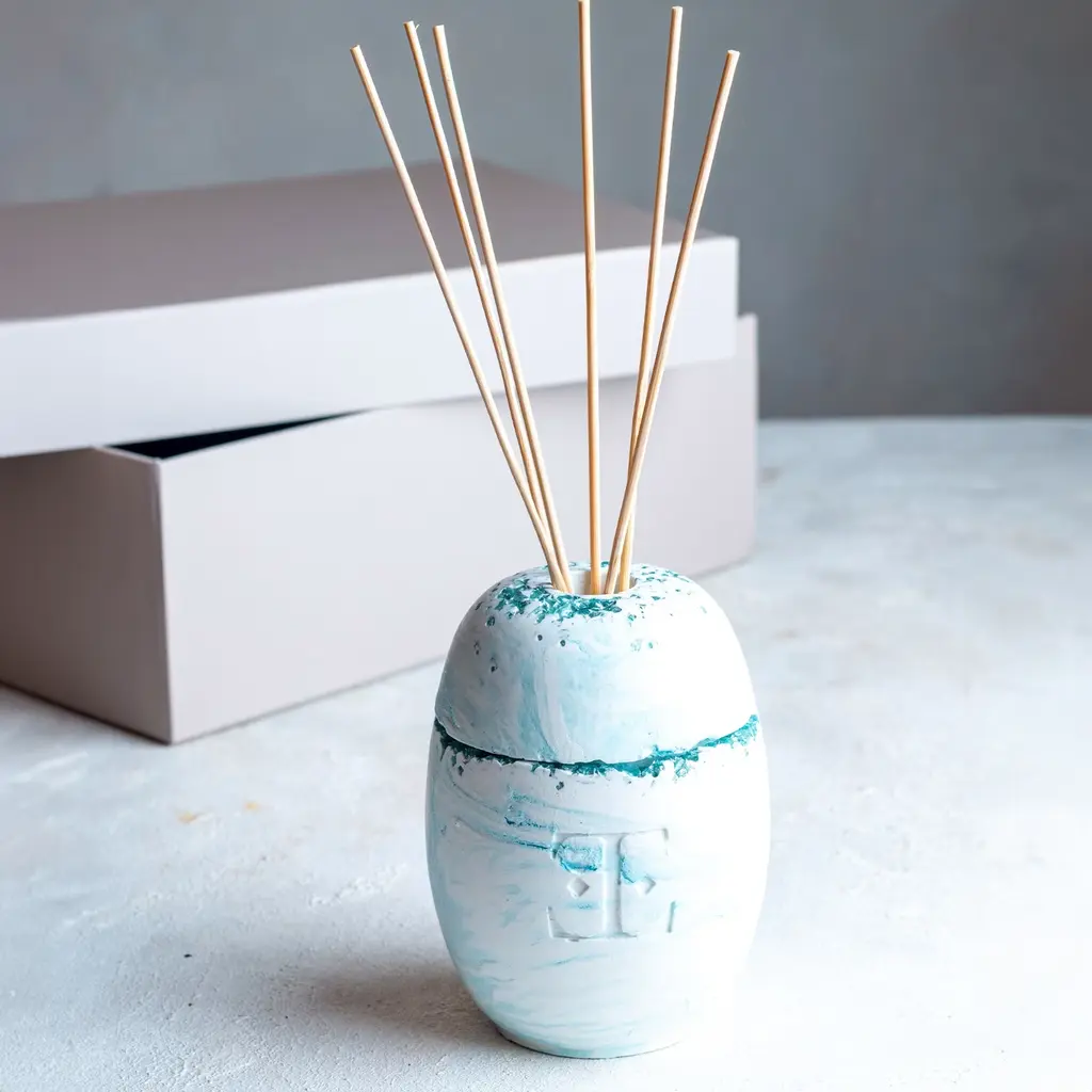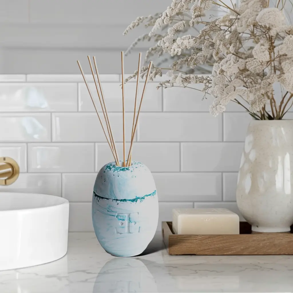 Blue Meets TranquilityImagine the serenity of an endless ocean in the calming tones of each handcrafted Ocan Wave reed diffuser. With the Ocean Wave fragrance, you embark on a sensory journey. Fig and vanilla blend harmoniously, evoking a lush coastal landscape. The grounding touch of patchouli completes the experience like a comforting embrace from the sea itself.