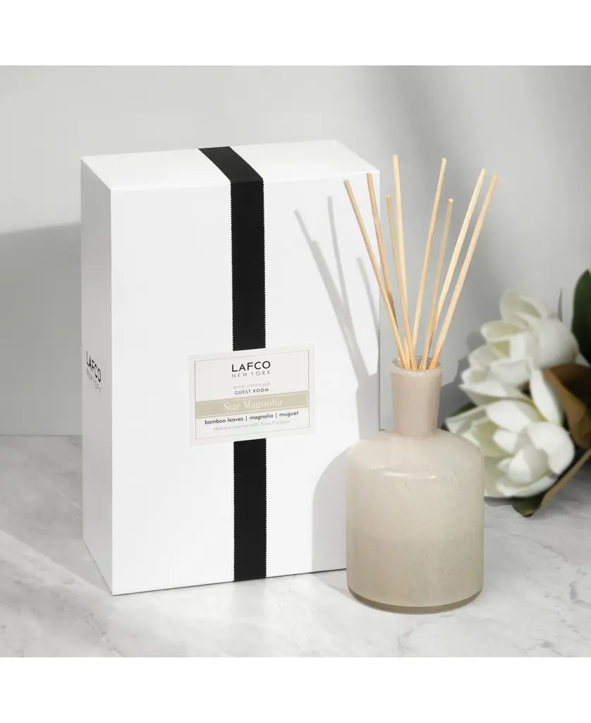 LAFCO's Star Magnolia collection of fragranced diffusers and candles fills the air with fresh notes of bamboo leaves, magnolia and muguet.