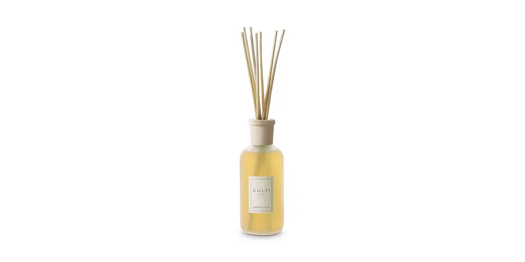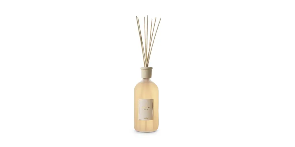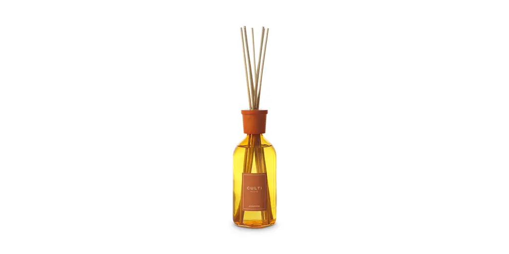 The colored glass cylindrical bottle with matching label and an orange maple wood cap distinguish the pure and elegant aesthetic of the CULTI MILANO COLOURS line and adds a delightful burst of energy to liven up any room. Aramara encapsulates a sunny day in the countryside, infused with the reassuring aroma of citrus peel. The scent of the fruits is dispersed and remains suspended between a pleasant bitterness and a candied sweetness, just like some of life's moments.