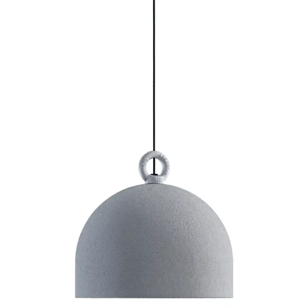 Taking inspiration from the bollards found in the urban landscape, Urban Concrete is a lighting piece balancing clean lines and solid surfaces with a dome crowned by a lifting hook.Whilst the spun metal dome evokes a cement block and creates an illusion of heaviness, Urban Concrete is extremely light and flexible. Thanks to the contrast between the three cement finishes – soft gray, tough gray and pink dust – and the pure white of the diffuser’s internal surface, Urban Concrete gives a touch of material appeal and sophistication to any interior.Available in four sizes (25, 50, 60, and 80 cm), Urban Concrete is designed for different uses and interiors, both domestic and public. The 25 cm dome is suspended from one single power cable and can also be installed on multiple canopies to create pop compositions and unique clusters through a dynamic interplay between solidity and simplicity. Additional Information:Materials: Metal diffuserColor: White / Tough grayLight Source: LED G30 Medium base 1 max 25WBulbs not included Dimensions: ø 80 x 45.5 H cmAvailable in other color options: Pink dust and soft grayAvailable in other size option: 25, 50 and 60